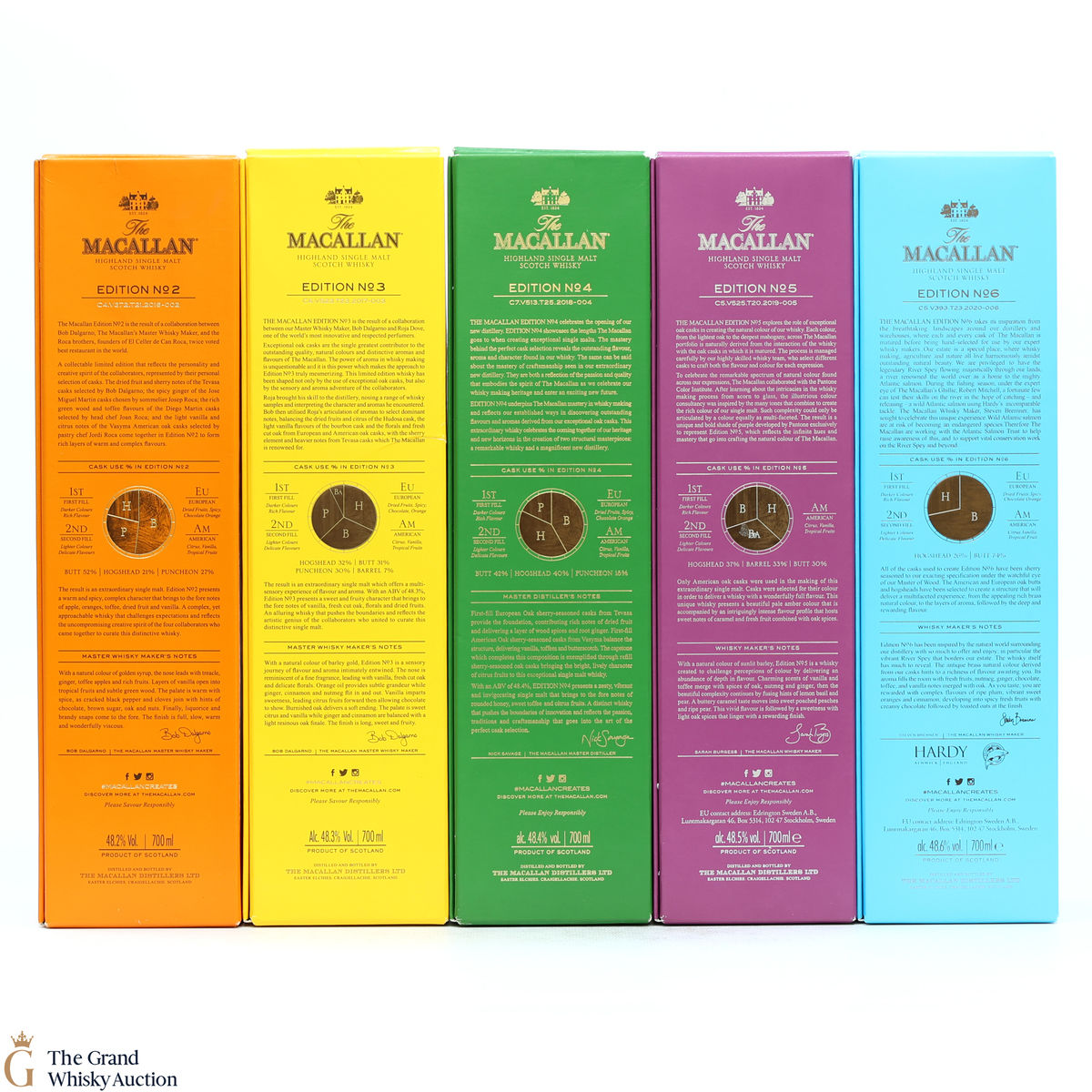 This lot brings together the Macallan Edition set to date, comprising of Edition no. 2, 3 4, 5 & 6 in the annual limited edition series.