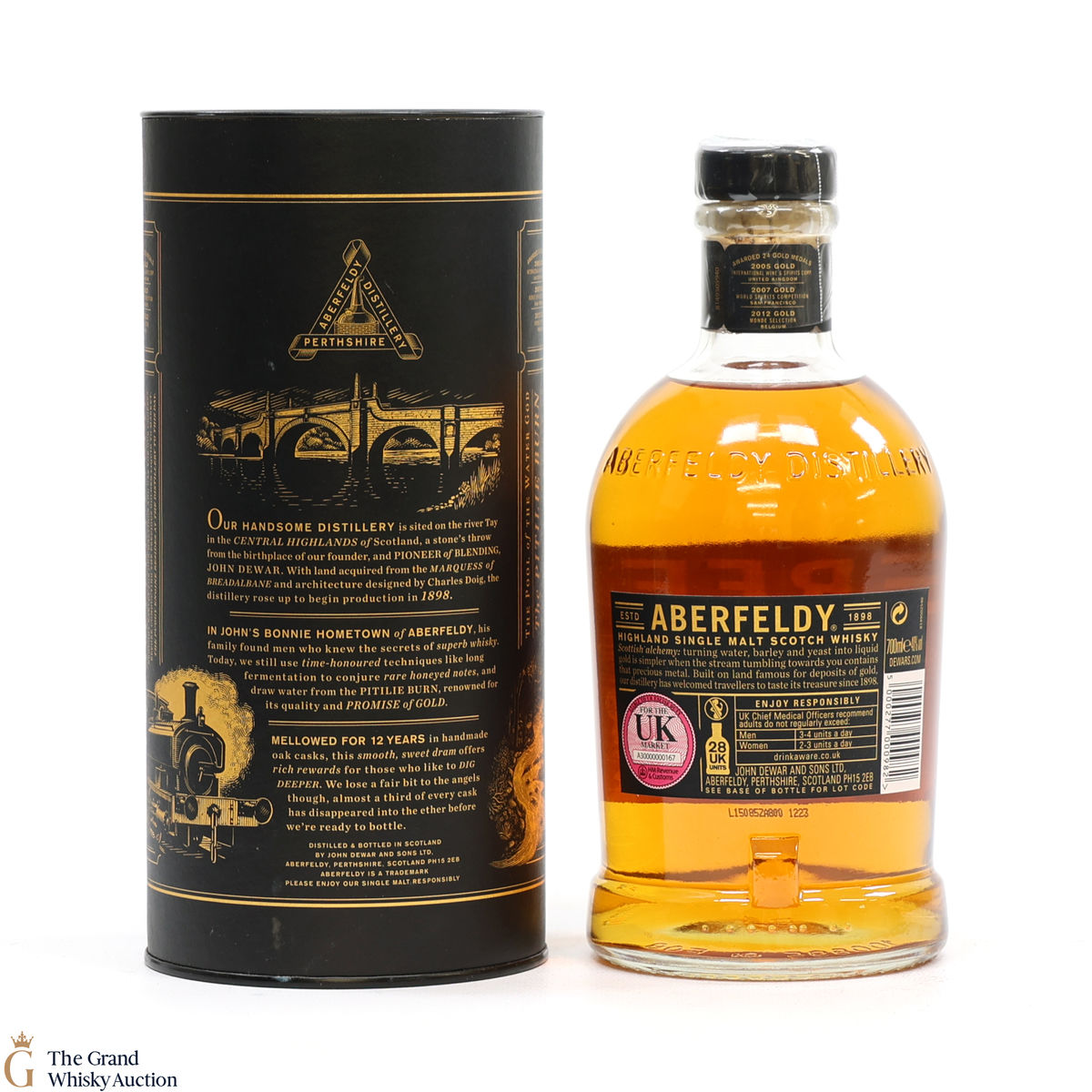 Due to the various ages of bottles and their seals, the condition of liquid is at the buyer's discretion and no claim can be lodged against failure/leakage in transit. Loss and breakage cover is available at 3% of the hammer price as standard. If the lot is not insured, no claim can be lodged against the courier or The Grand Whisky Auction for breakage or loss in transit.