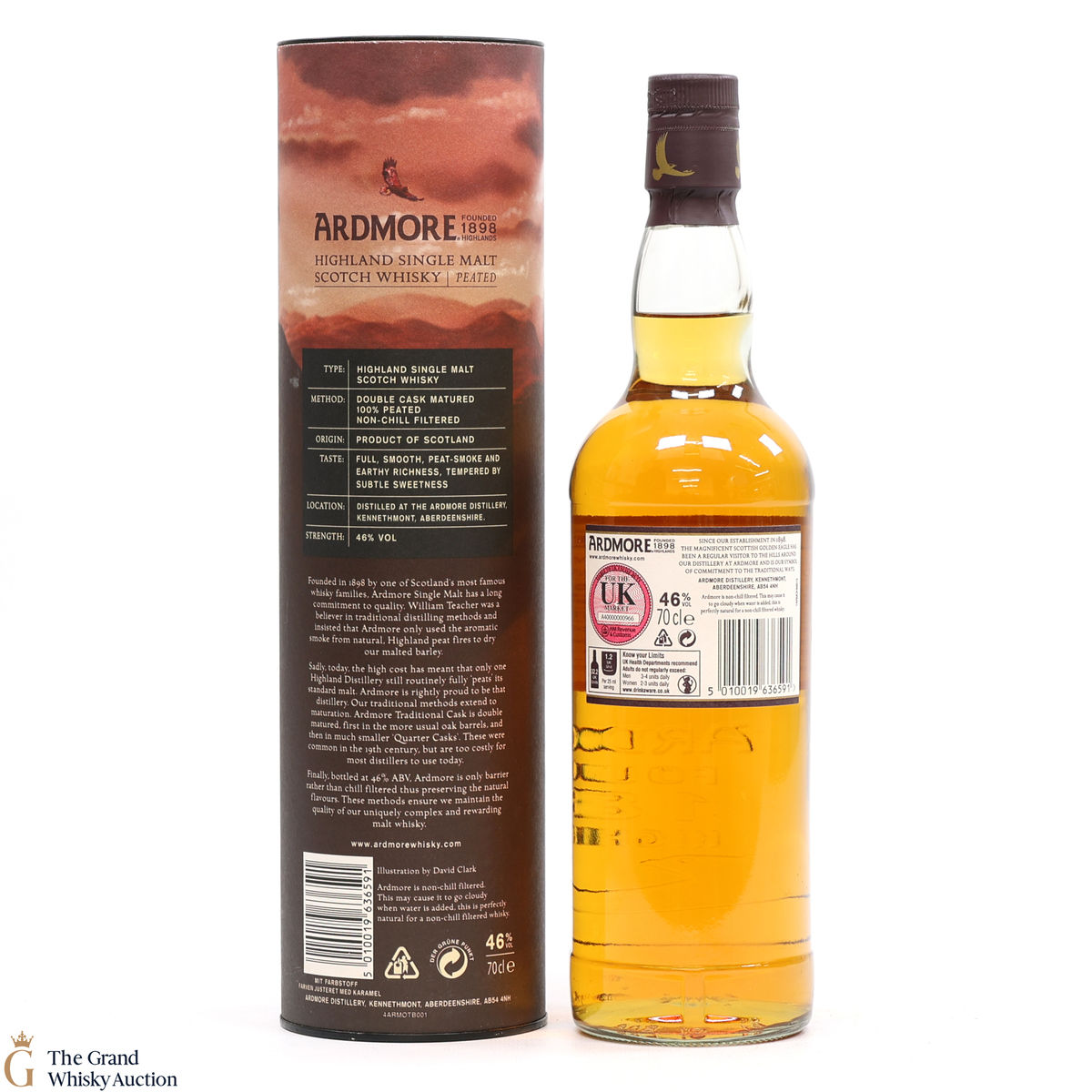 Ardmore Traditional Cask is a double-cask matured whisky. It was aged in bourbon barrels. The final maturation was in quarter casks to help enrich the whisky due to the smaller size of the cask type. It is a lightly smokey and rich Highland whisky. The 2007 release of this 'Traditional Cask' was the first official single malt from the Ardmore distillery, this is a young whisky, but it was aged in quarter casks.