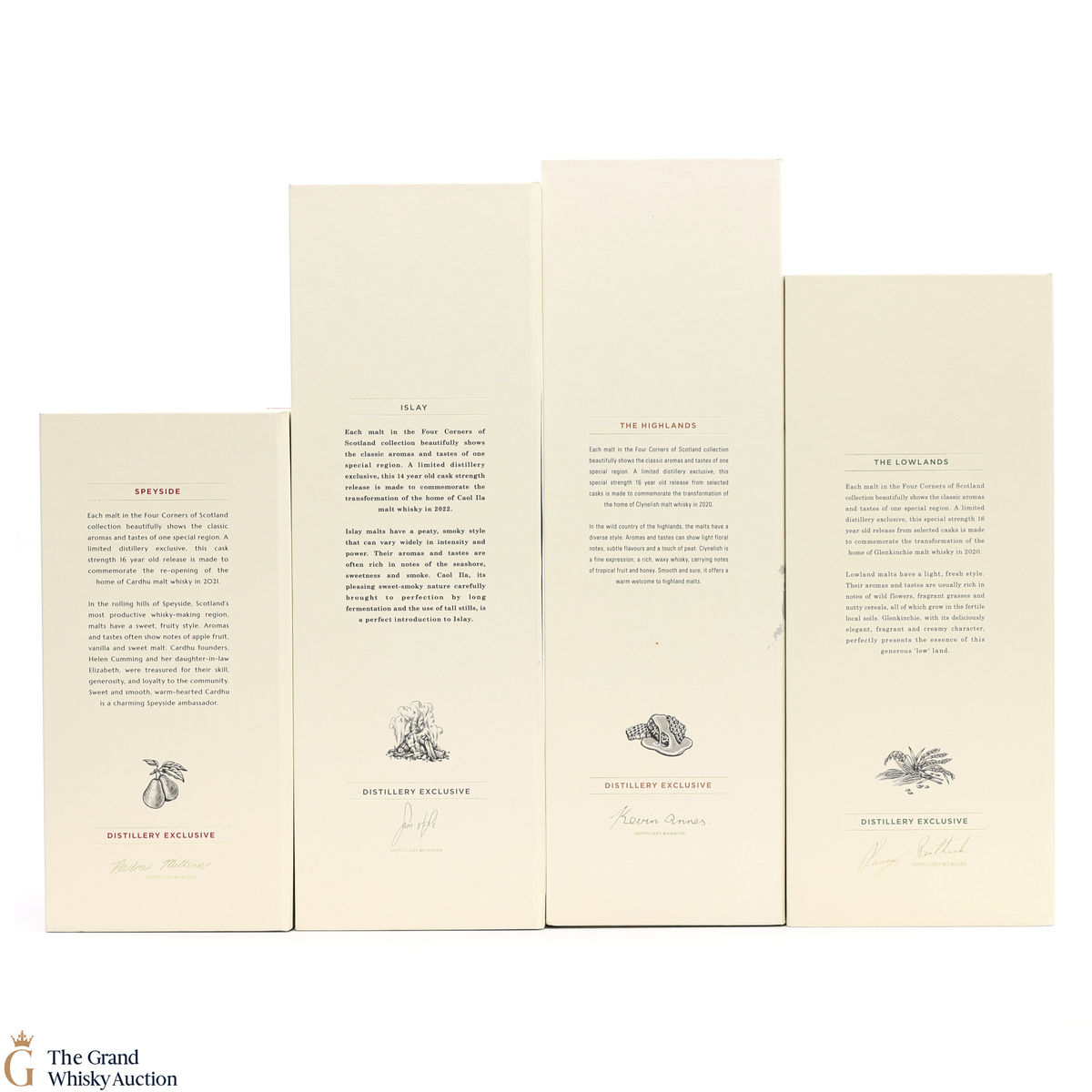 The four distilleries represent the 'four corners of Scotland' and it's regional whisky variations which are at the heart of Diageo's Johnnie Walker blended Scotch whisky range; Lowland - Glenkinchie, Speyside - Cardhu, Islay - Caol Ila and Highland - Clynelish.