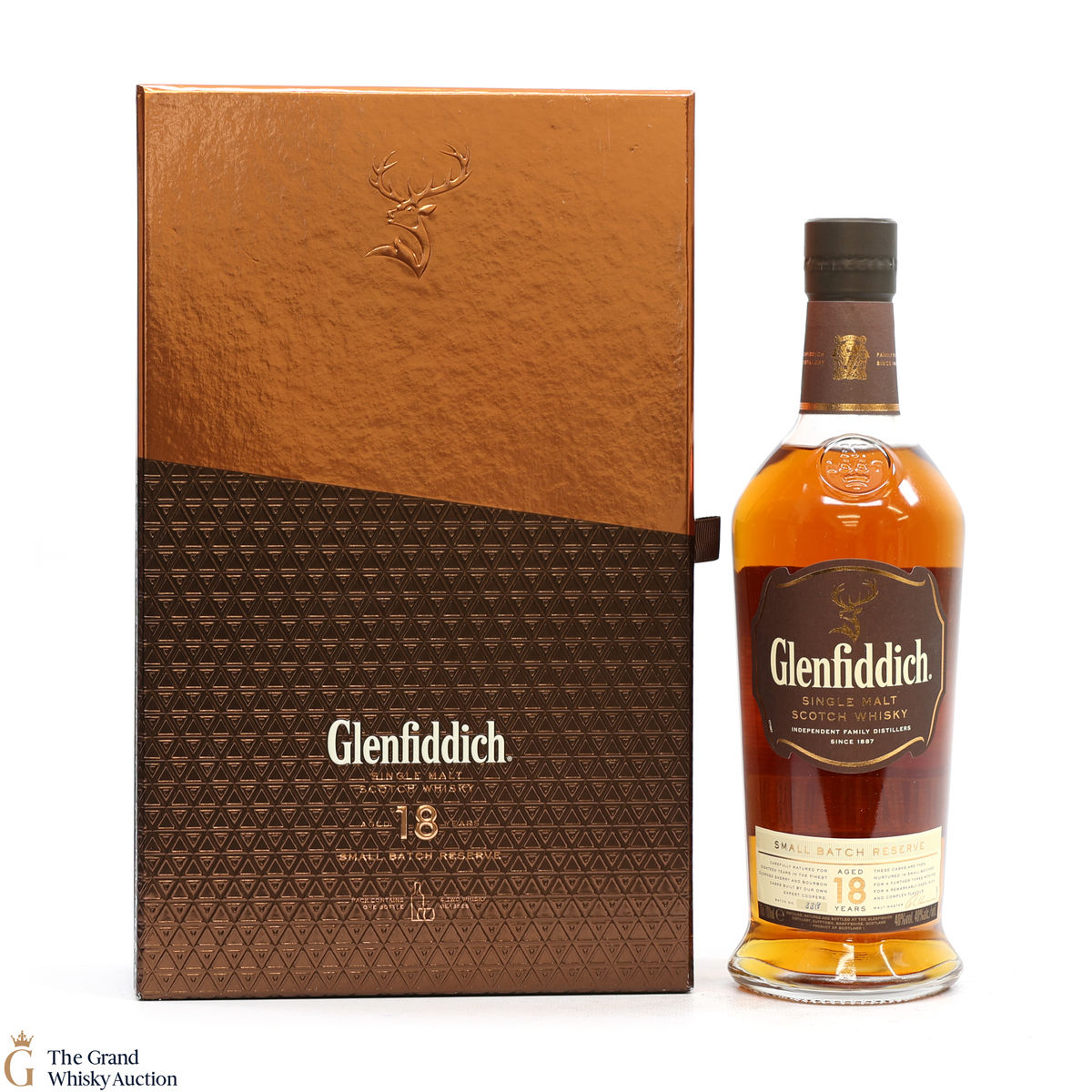 Matured in small batches the Glenfiddich 18 is arguably the most complex in the core range. The single malt has been matured in oloroso sherry and bourbon casks. It is very fragrant with tropical fruit and sherry cask influences, rich baked apple and cinnamon spice compliments by robust oak notes.