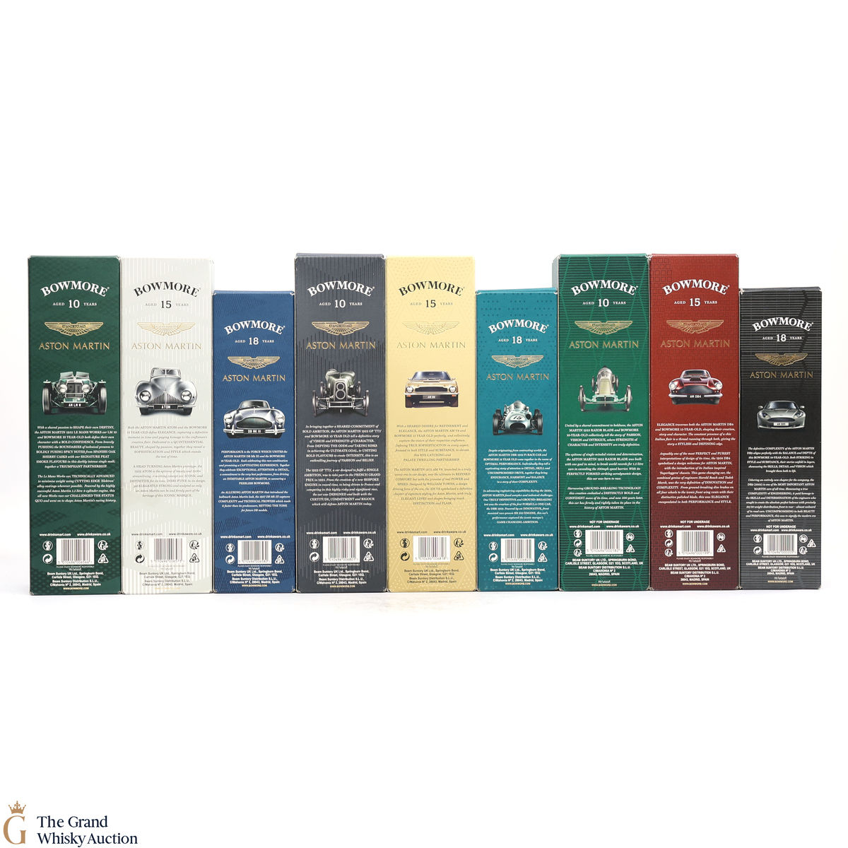 Exclusive to the Global Traveller, this collaboration between Bowmore and Aston Martin creates timeless beauty and a lasting legacy. Each edition of the collection features an iconic Aston Martin car model, paired perfectly with a Bowmore dram to reflect its character. This is the full collection of editions 1-9, there are two of each edition to complete the images of the cars.