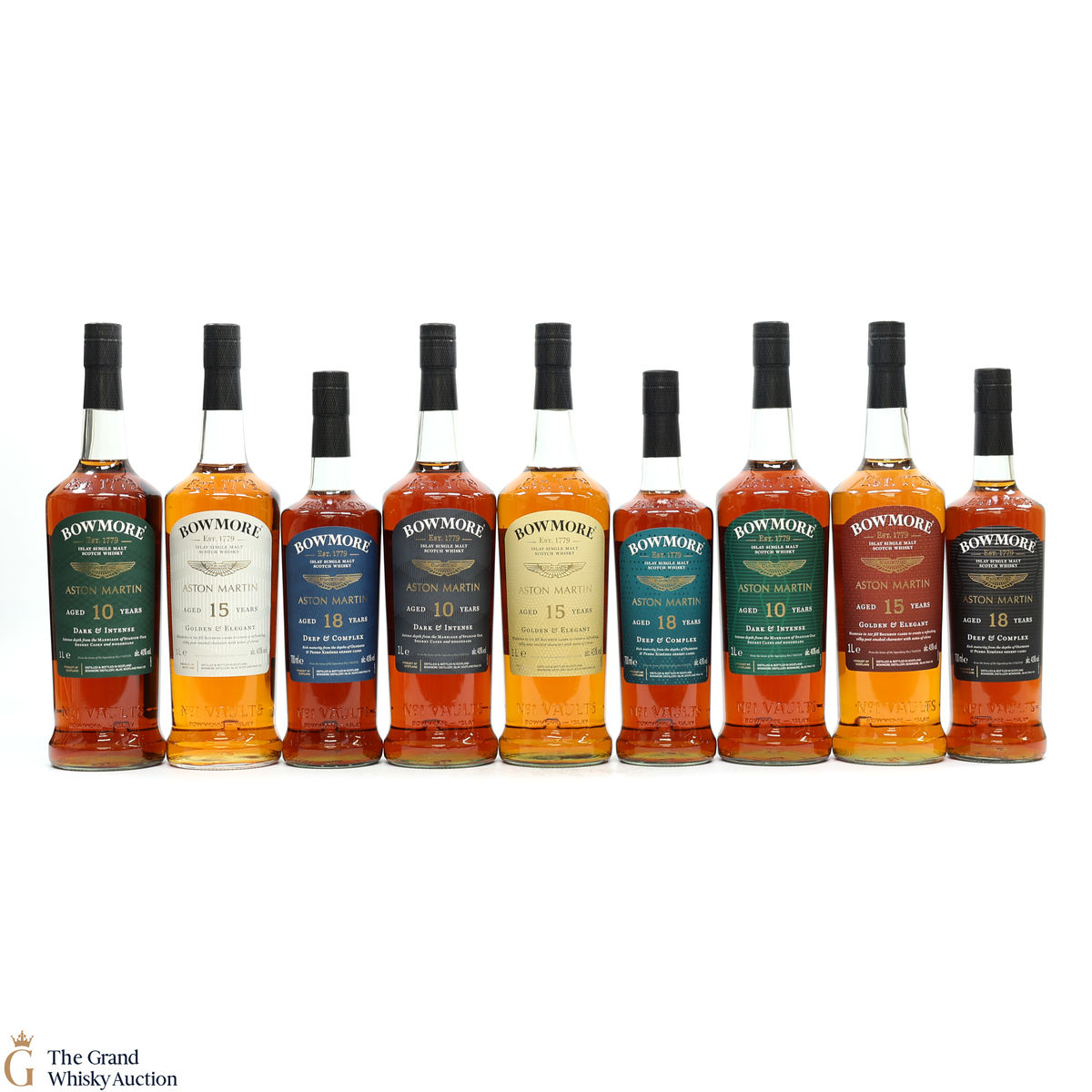 Bowmore - 15-Year-Old - Aston Martin Edition 8 (1L): Edition 8 of the Bowmore x Aston Martin collaboration celebrates the iconic Aston Martin 1958 DB4. Arguably one of the most perfect and purest interpretations of design of its time. This single malt was married in 1st fill Bourbon casks to create a refreshingly, silky peat-smoked character with notes of citrus. 43% ABV