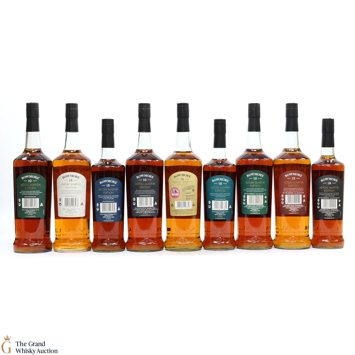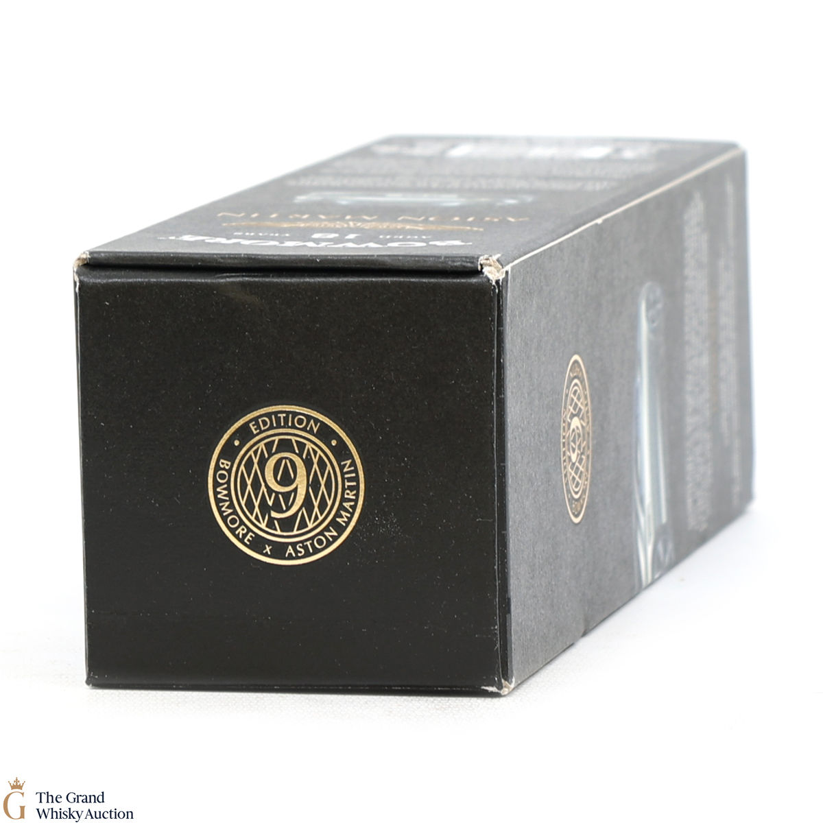 Bowmore - 18-Year-Old - Aston Martin Edition 9: Edition 9 of the Bowmore x Aston Martin collaboration celebrates the iconic Aston Martin DB9 (2003). DB9 aligns perfectly with the balance and depth of this Bowmore 18-year-old. This single malt has a rich maturity from the depth of Oloroso & Pedro Ximénez sherry casks. 43% ABV