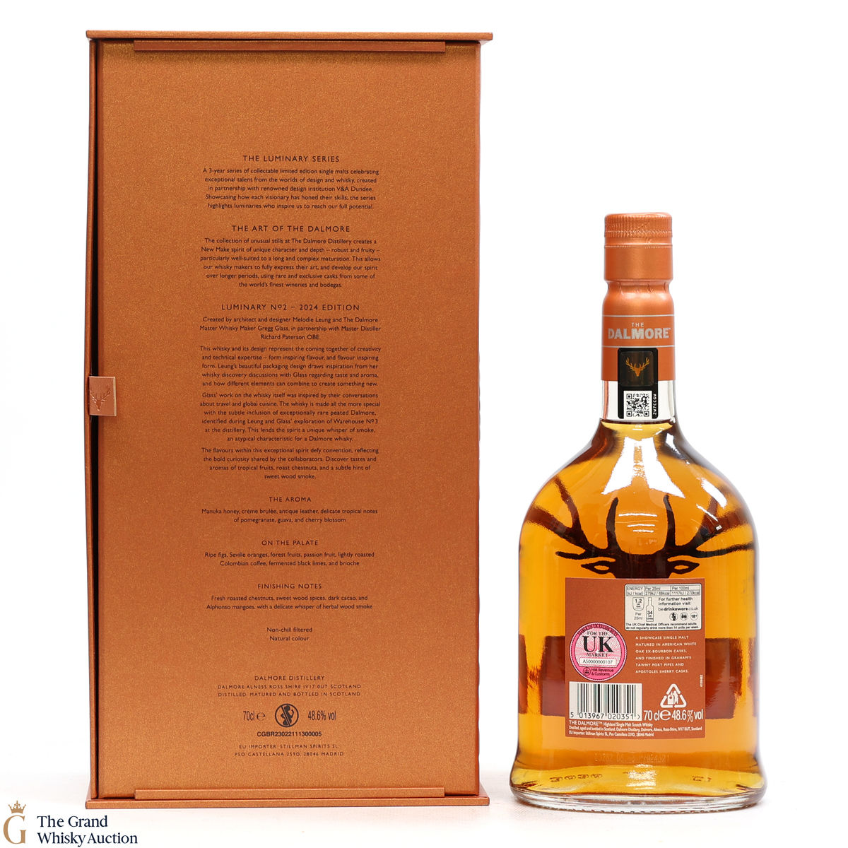 Matured in American white oak ex-bourbon casks, and finished in Graham's tawny port pipes and apostles sherry casks. With the lightest touches of exceptionally rare peated Dalmore.