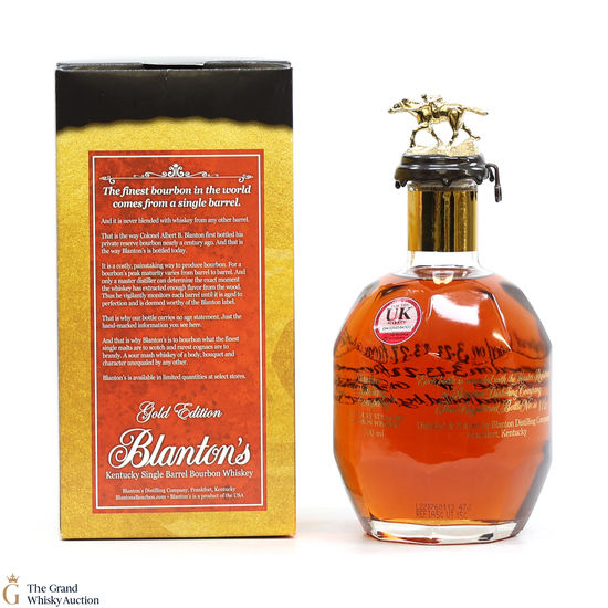 PLEASE NOTE: The wax seal on Blanton's bottles are prone to cracking in transit due to their design. Therefore, as stated in our T&C’s, we do not and will not accept liability should the seal be breached, broken, split or leak in transit. Additionally, please know due to the design of the internal cardboard packaging that surrounds the top of the bottles, it too may be torn. By bidding on this lot you have understood this to be true. Insurance is for complete breakage or loss in transit only.