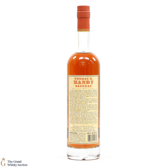 This collection is dubbed the antique collection and celebrates famous figures. The companies founder, Thomas H. Handy, is on the front of this bottle with the picture of the Sazerac Coffee House where everything started.