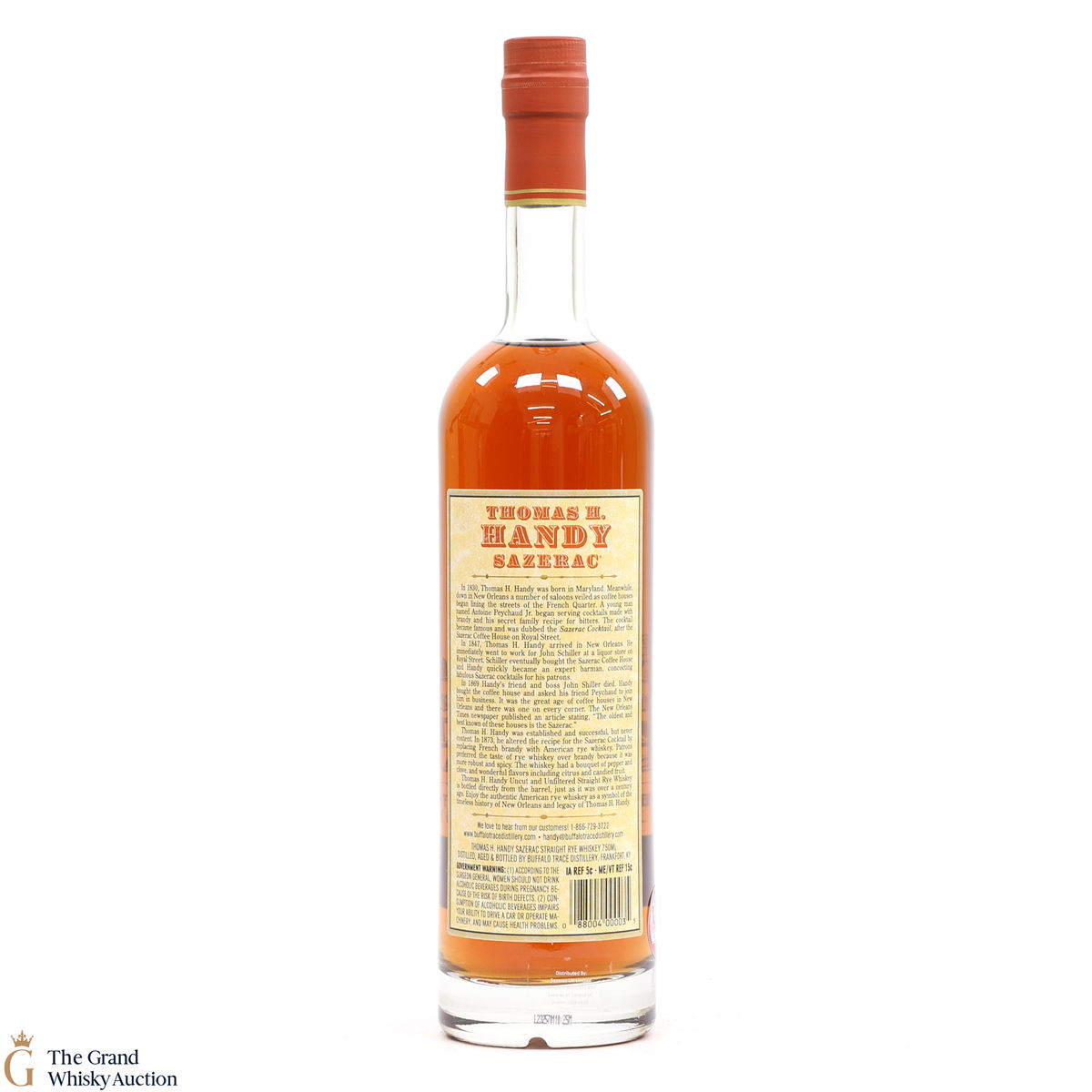 This collection is dubbed the antique collection and celebrates famous figures. The companies founder, Thomas H. Handy, is on the front of this bottle with the picture of the Sazerac Coffee House where everything started.