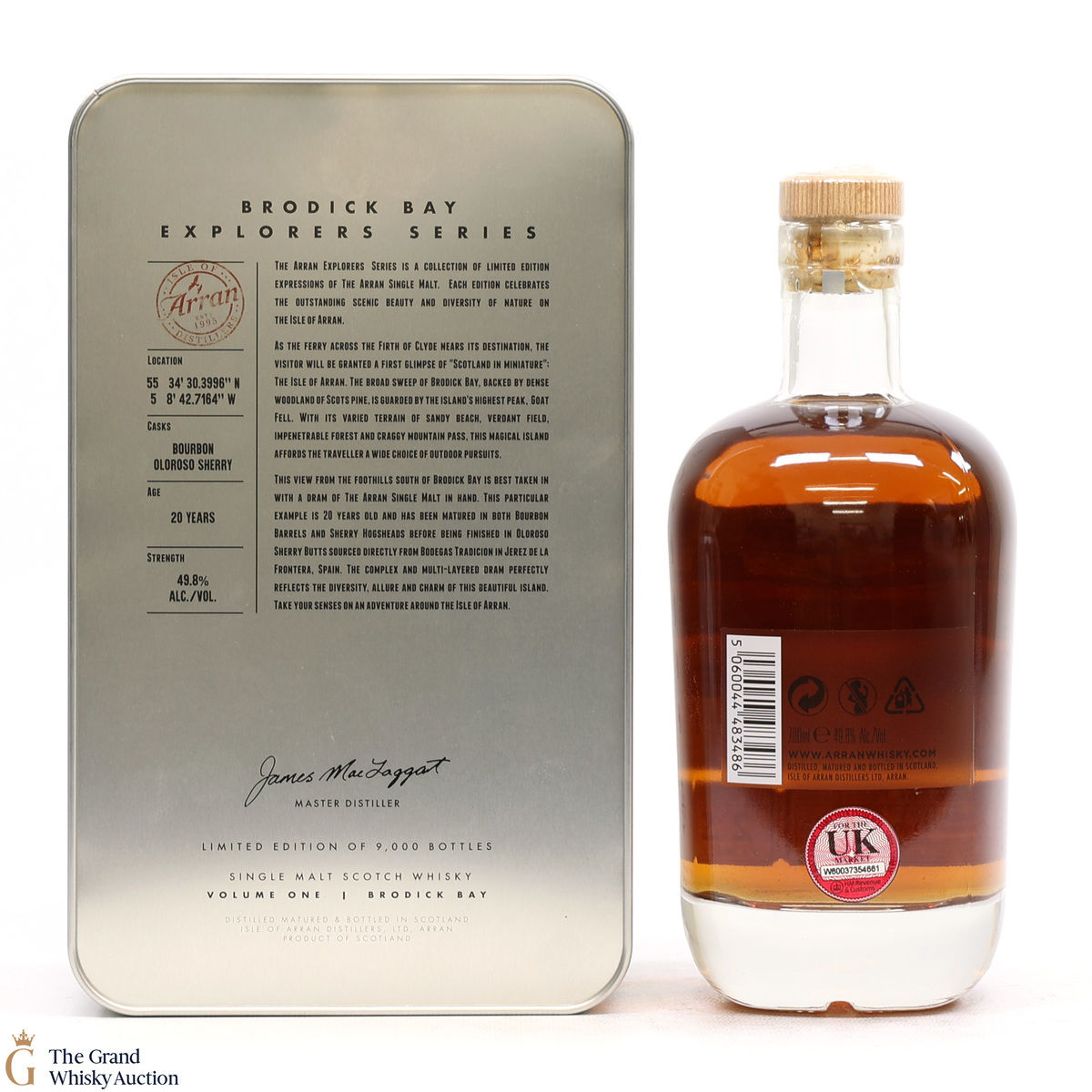 The presentation tin and the bottle label features a beautiful view from the foothills south of Brodick Bay. This is one of 9000 bottles.
