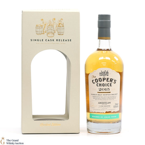 Distilled in September 2015 and first matured in American Oak, this Aberfeldy single malt has been finished in a Beaumes De Venise sweet wine cask. Bottled in 2022 at 55.5% for the Cooper's Choice series by the Vintage Malt Whisky Co.
