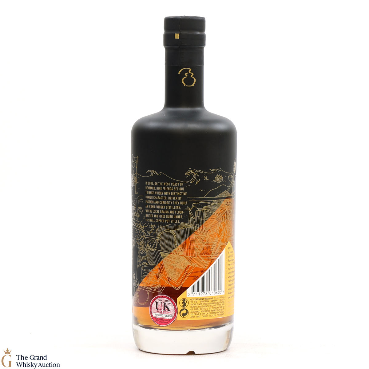 This is a Danish single malt whisky, a different kind of rye whisky. The combination of malted rye and barley and pot still distillation makes this a smooth, fruity and full-bodied whisky.