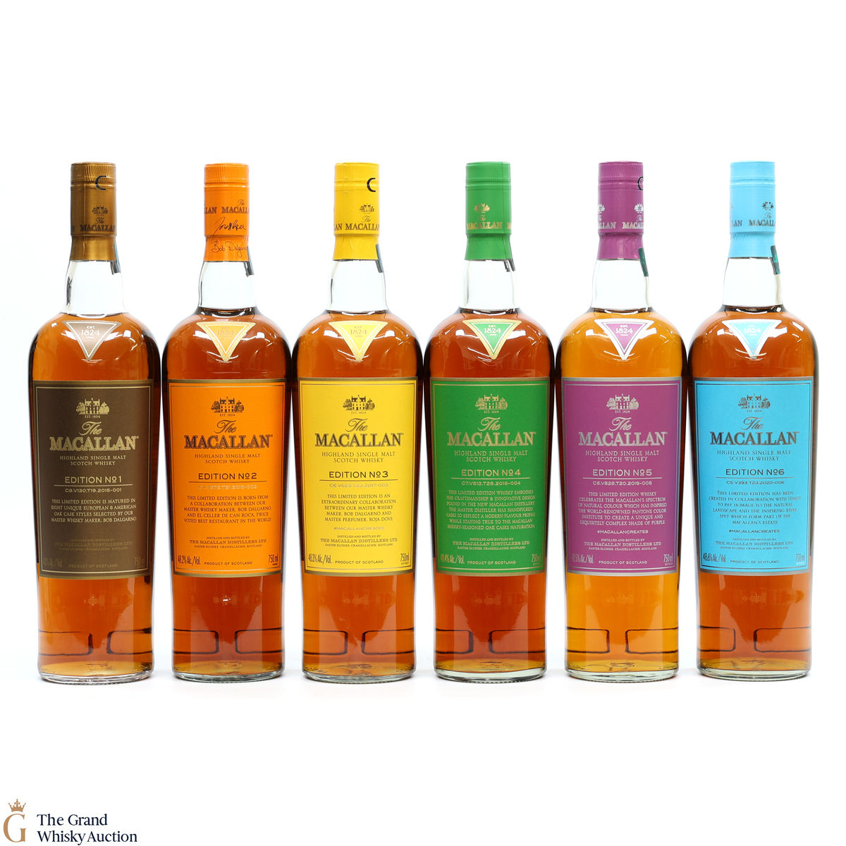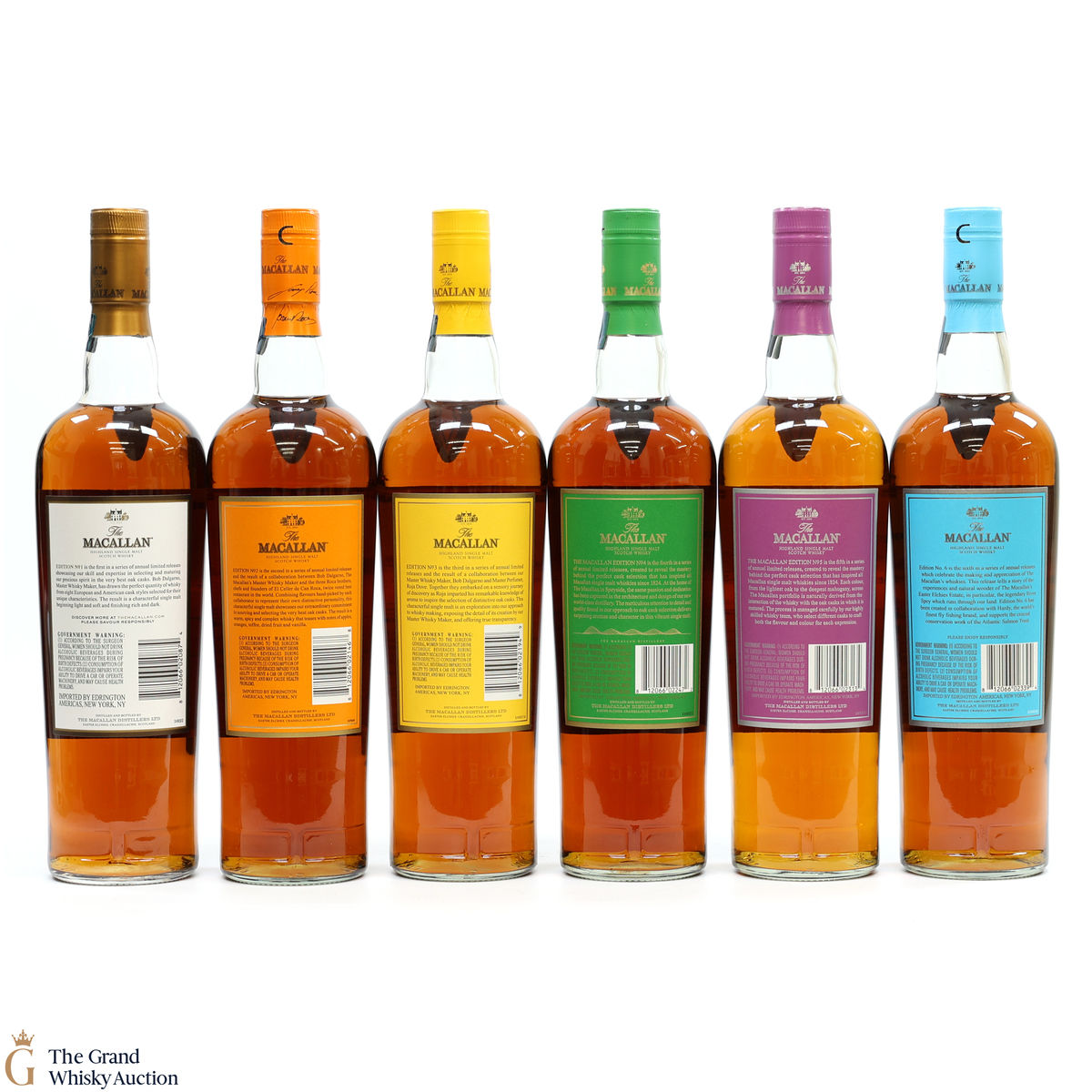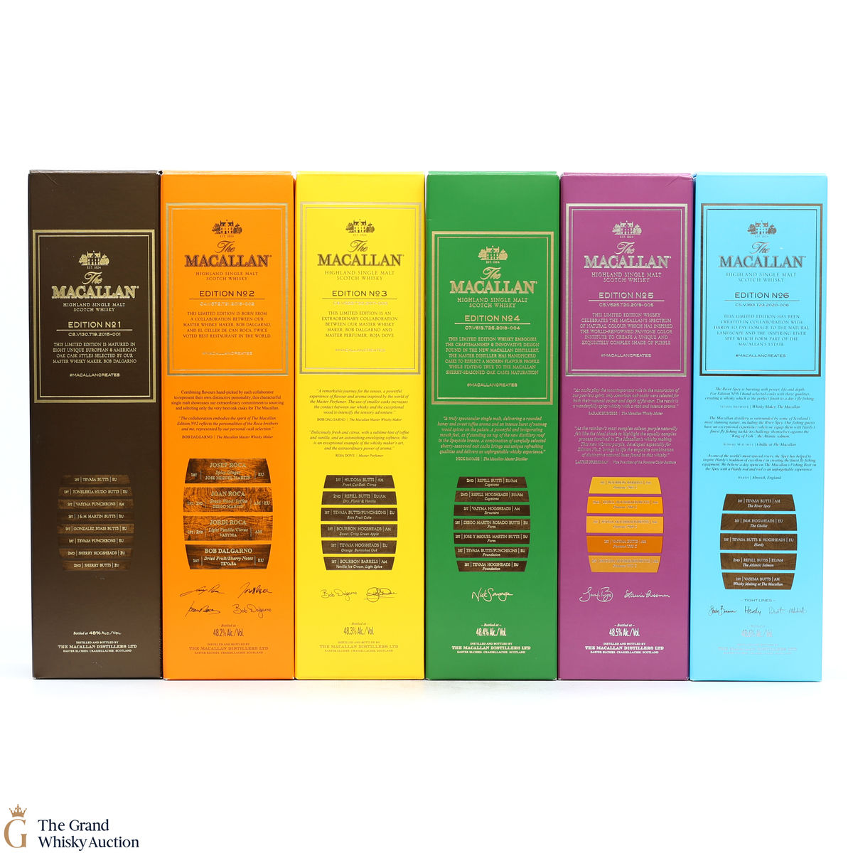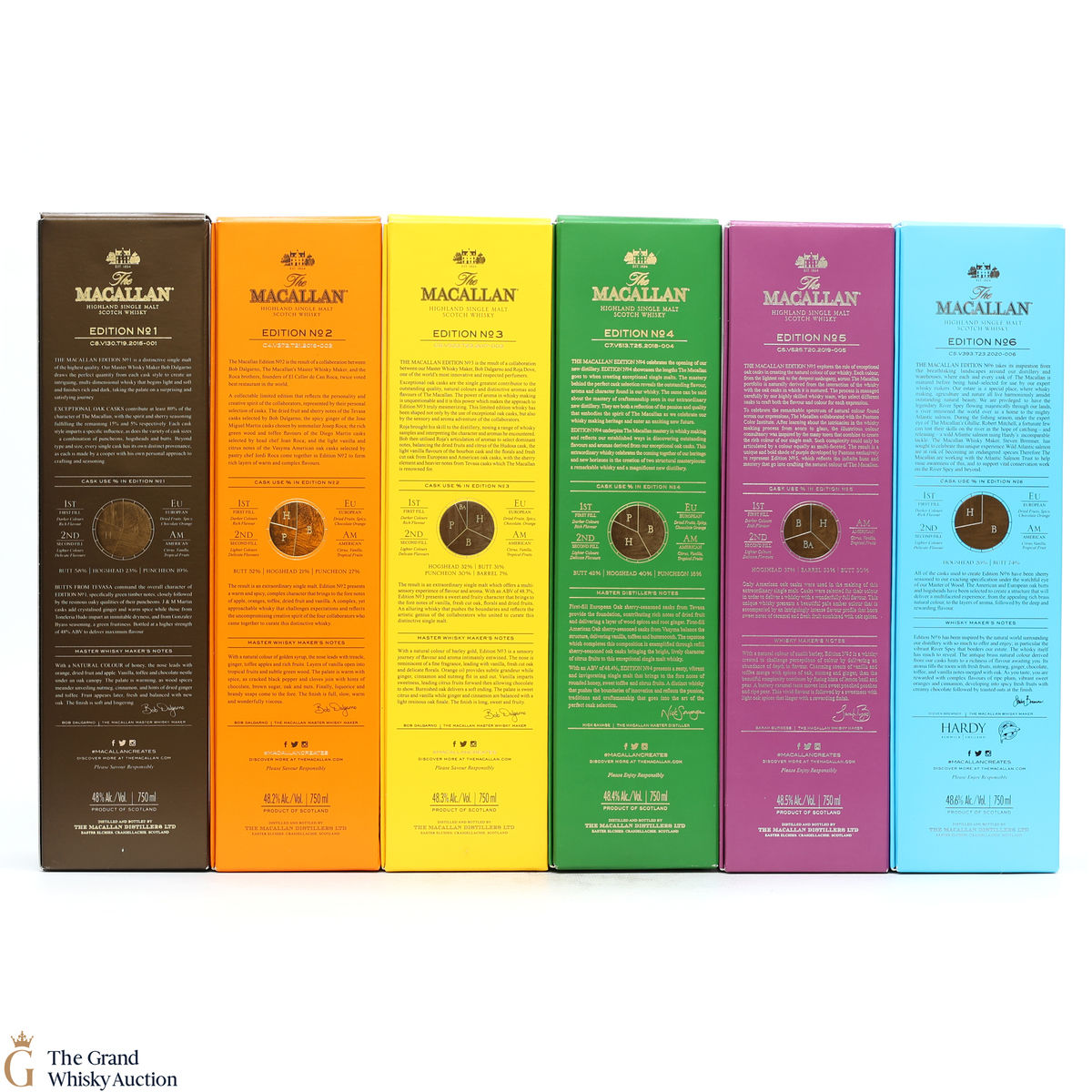This lot brings together the Macallan Edition set, comprising Edition No.1-6 in the annual limited edition series 2015-2020.