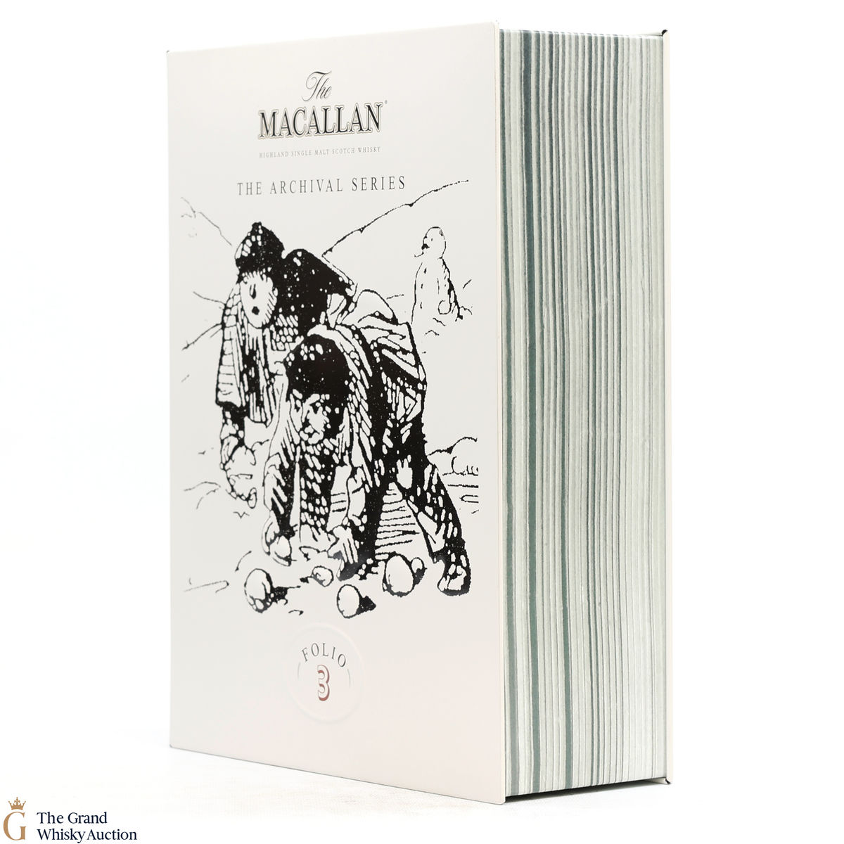 The theme of the Folio 3 is Macallan's advertising campaigns from the 1980s and 1990s. The presentation includes a book containing the best of these. The illustration on the box is from an advert used in a Victorian-era edition of Punch Magazine. It is intended to capture the sentiment that whisky is best produced in cold weather - a remark that Macallan claim was made on their very own estate at Easter Elchies.