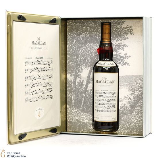 The fourth edition in the Archival Series from The Macallan. Folio 4 remembers the legendary advertising campaigns of the 1970s, 1980s and 1990s that brought The Macallan to the public’s attention outside of Scotland. It is presented in a beautiful book shaped, tin case. It features an advertisement including a Strathspey composed by James Scott Skinner (1843-1927). The advert notes that Skinner was so moved by his favourite malt he created a unique piece of music featuring his signature lilting notes with the simple catchphrase: “The Macallan. The Malt.”