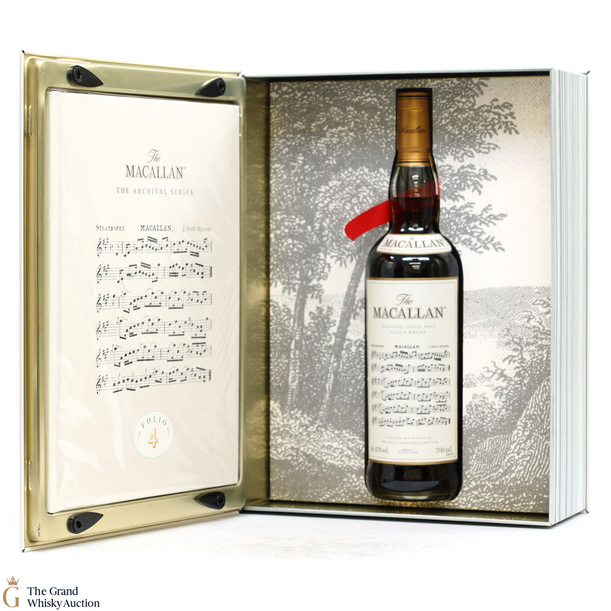 The fourth edition in the Archival Series from The Macallan. Folio 4 remembers the legendary advertising campaigns of the 1970s, 1980s and 1990s that brought The Macallan to the public’s attention outside of Scotland. It is presented in a beautiful book shaped, tin case. It features an advertisement including a Strathspey composed by James Scott Skinner (1843-1927). The advert notes that Skinner was so moved by his favourite malt he created a unique piece of music featuring his signature lilting notes with the simple catchphrase: “The Macallan. The Malt.”