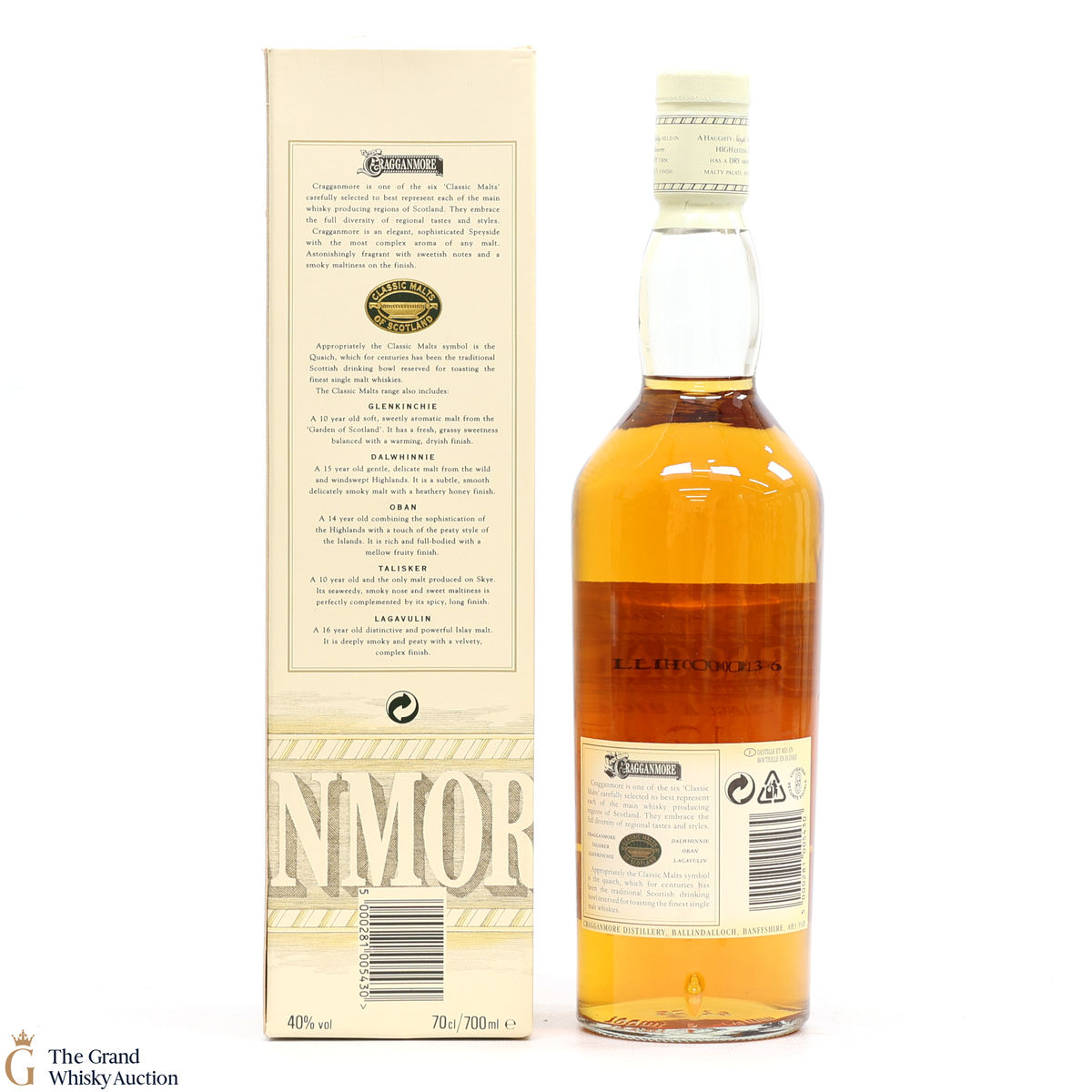 Due to the various ages of bottles and their seals, the condition of liquid is at the buyer's discretion and no claim can be lodged against failure/leakage in transit. Loss and breakage cover is available at 3% of the hammer price as standard. If the lot is not insured, no claim can be lodged against the courier or The Grand Whisky Auction for breakage or loss in transit.