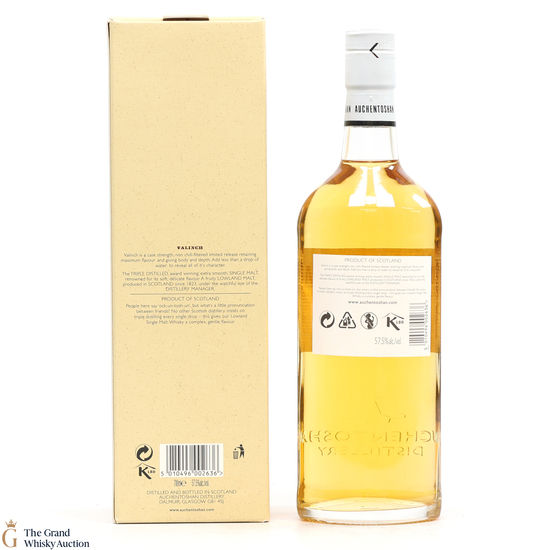 The 2011 limited release of Auchentoshan's cask strength matured in first-fill bourbon casks, bottled at 57.5% ABV.
