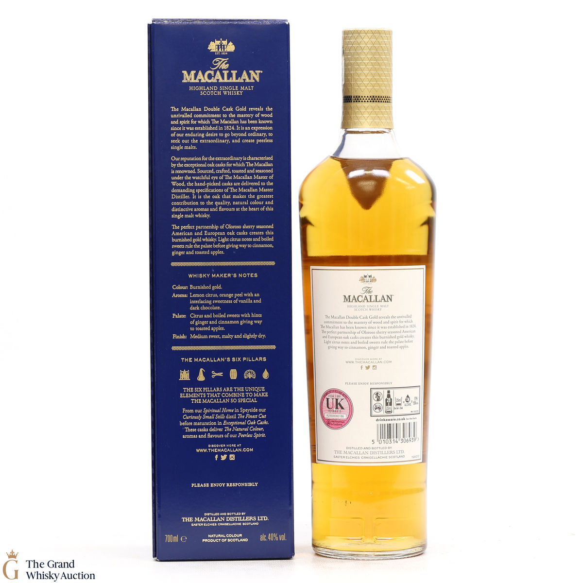 Macallan Gold was first introduced in 2012 as part of the distillery's 1824 range of non-age statement expressions, before being renamed Macallan Gold Double Cask in 2018 as part of the new core range. Matured in a combination of first fill and refill American oak and European oak sherry casks to create an incredibly smooth and rich single malt. Soft gold in colour, this is the lightest expression of the Macallan range, but still packed with typical Speyside Macallan flavours.