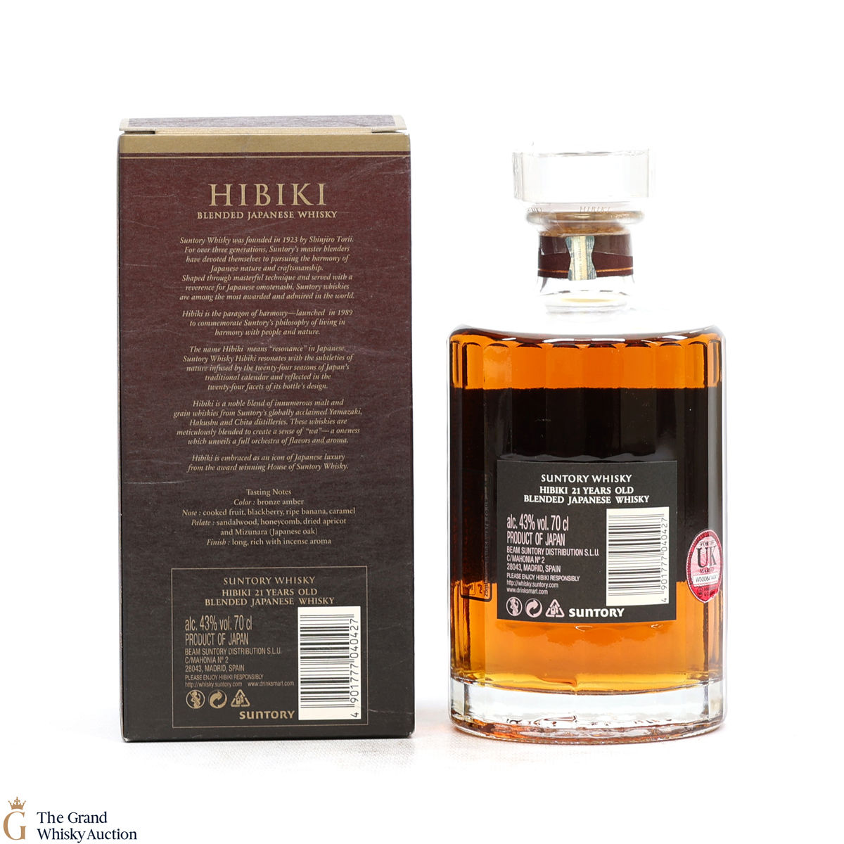 Hibiki 21-Year-Old is a very popular blended whisky from Suntory. It is made up of a blend of specially selected mature malt and grain whiskies aged over 21 years. The key Yamazaki sherry casked malt is vatted with other carefully chosen mellow unblended grain whiskies over 21 years old.