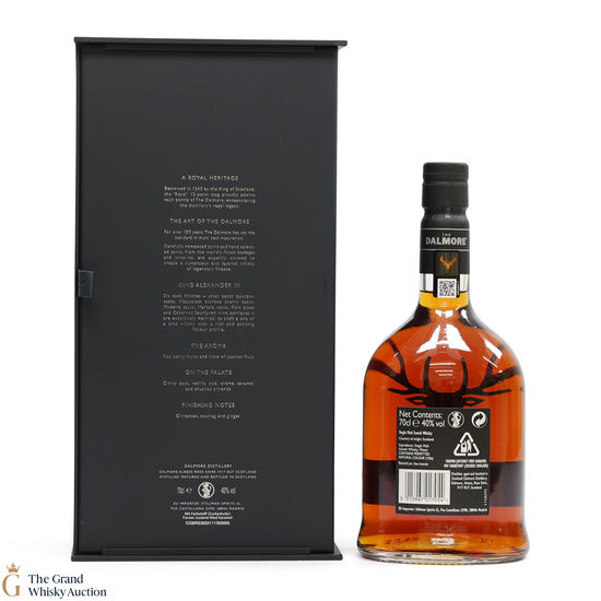 To make The Dalmore King Alexander III, Master Distiller Richard Paterson specially selected 6 casks of differently aged Dalmore malts matured in wine, Madeira, sherry, marsala, Kentucky bourbon and port casks. A remarkable feat of blending crafted to honour the act of saving Scotland's King in 1263. It is a rich, fruity Highland single malt.