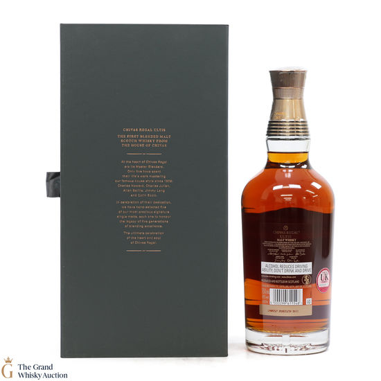 This is a 75cl bottling of Chivas Regal 'Ultis' which is 5 signature single malts blended together by 5 master blenders. This bottling is a tribute to the legacy of the 5 blenders.