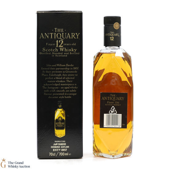 This bottling from Antiquary is a blend of some of Scotland's greatest 12-year-old malt and grain whiskies, including Royal Lochnagar, Tomatin, Cragganmore, Mortlach, Bowmore, Glenkinchie to name a few. Also, a quirky feature is that In the lid of this bottle box, there is a coaster that pops out!