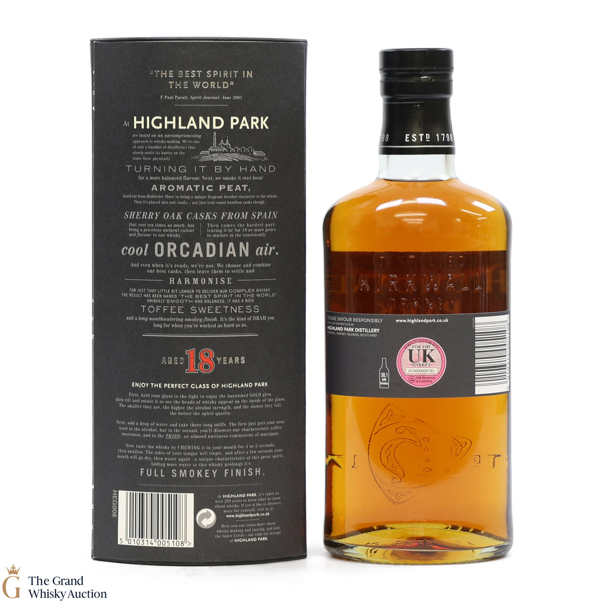 Highland Parks last batch of the 18-Year-Old single malt before the new packaging of the 18 Year Old Viking Pride.