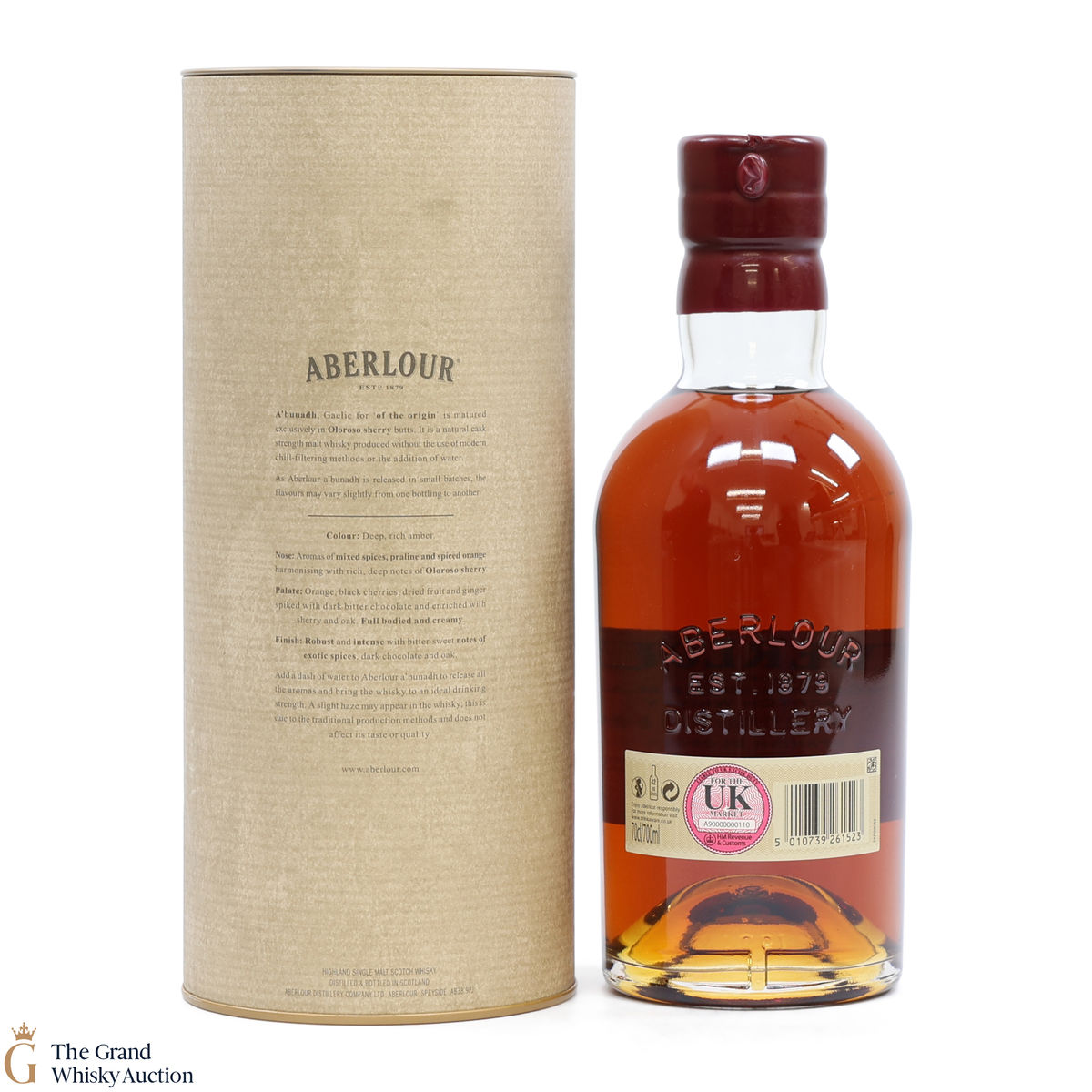 Meaning 'of the origin' in Gaelic, A'bunadh is made in homage to Aberlour's founder, James Fleming. This is batch No. 42 of the popular A'Bunadh single malt. It has been matured in Spanish Oloroso sherry butts and bottled at cask strength at 60.3% creating a dark luxurious whisky.