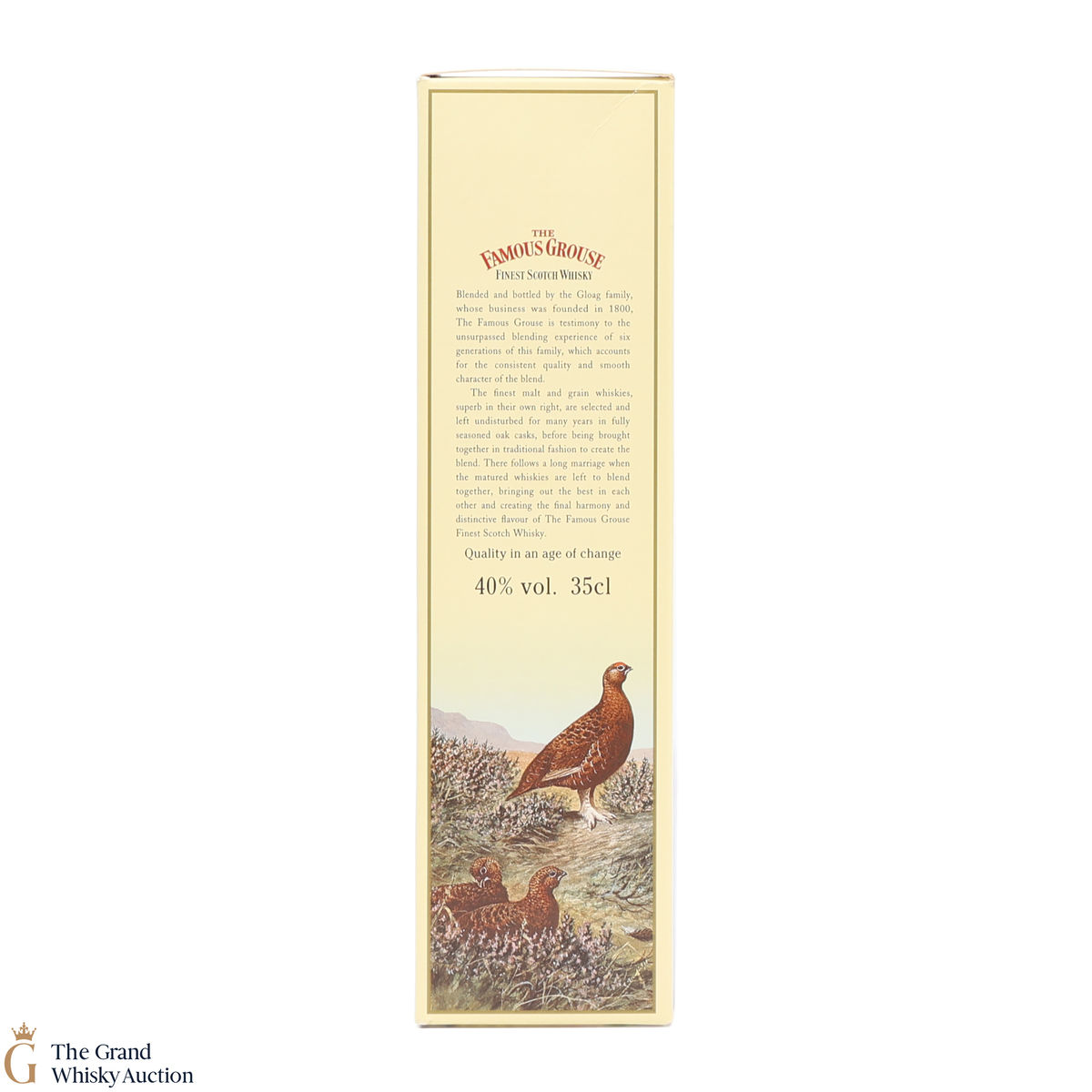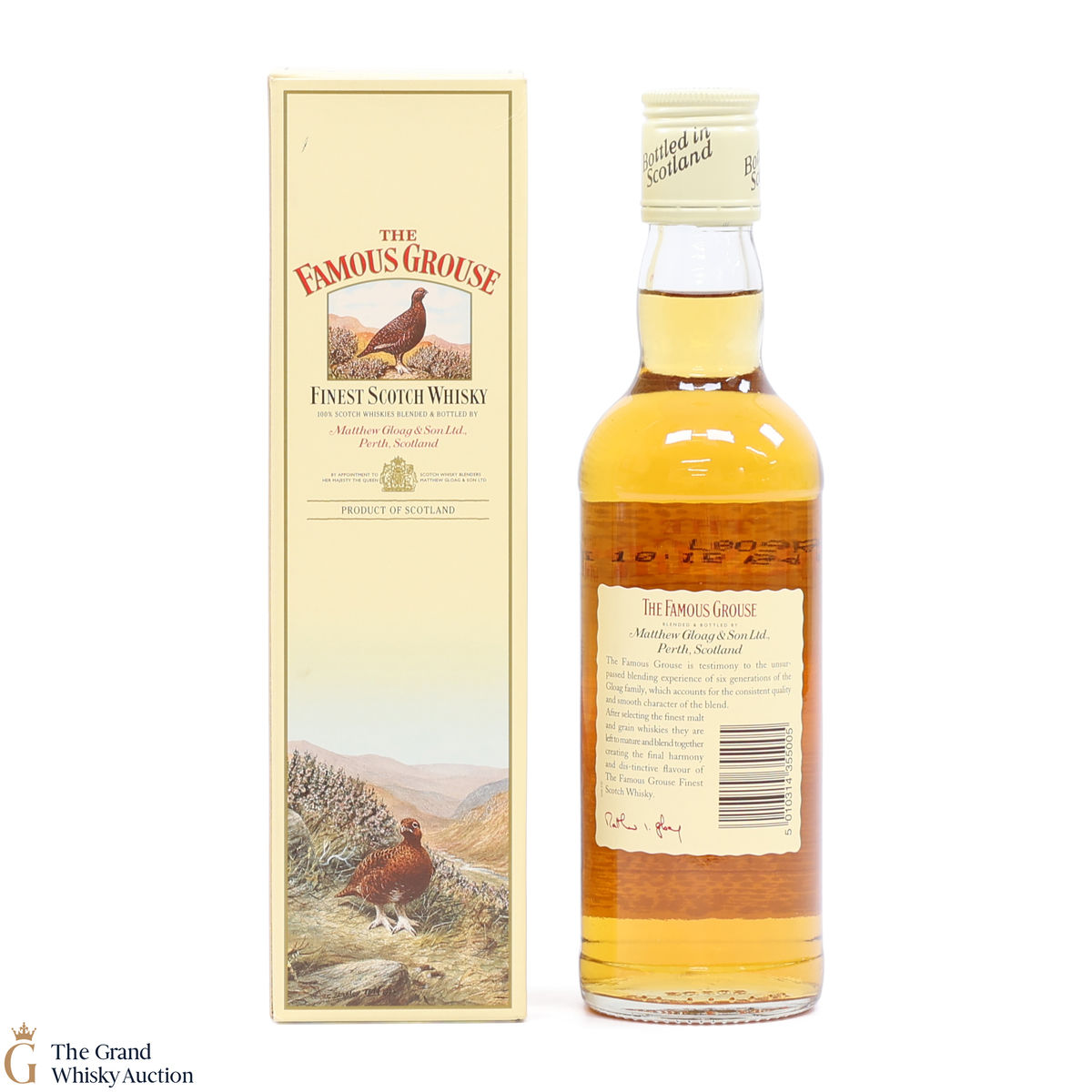 Famous Grouse blended scotch whisky was first produced by Matthew Gloag & Son Ltd in 1896, and is currently produced and owned by The Edrington Group.