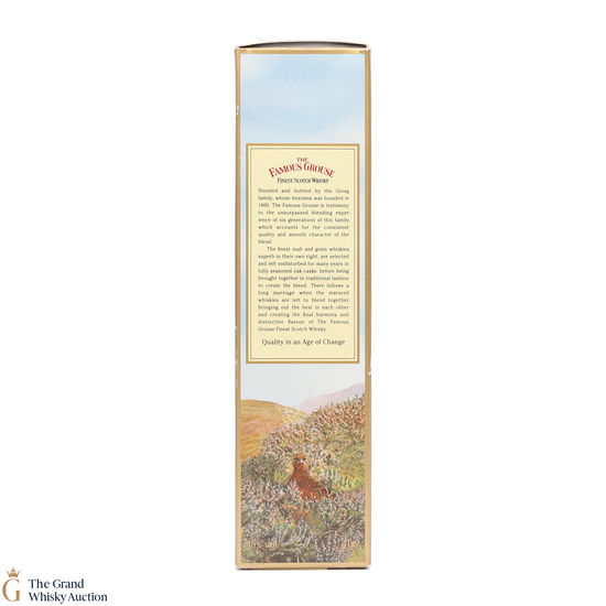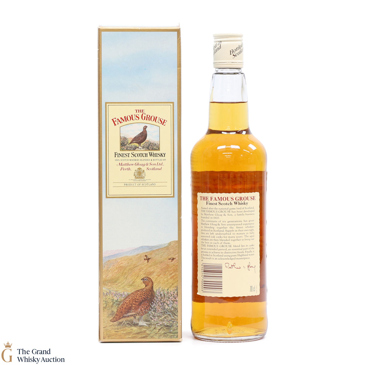 Famous Grouse blended scotch whisky was first produced by Matthew Gloag & Son Ltd in 1896, and is currently produced and owned by The Edrington Group.