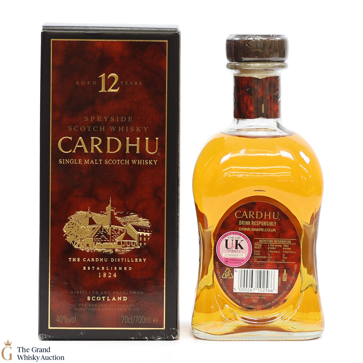 Cardhu 12-year-old single malt whisky from Speyside, Scotland. This single malt was purely produced at the distillery in Morayshire, Scotland. Although recognised as a Speyside whisky, they actually advertise as being Highland Scotch Whisky.