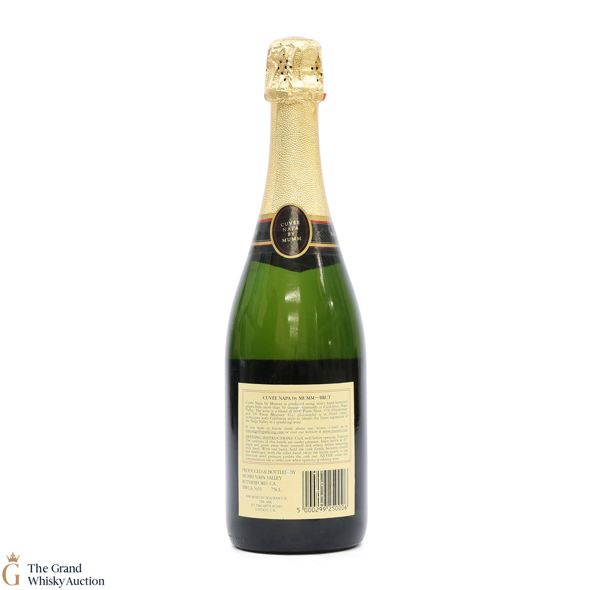 Cuvee Napa by Mumm is produced using select hand-harvested grapes from more than 50 separate vineyards in California's Napa Valley. The wine is a blend of 60% Pinot Noir, 35% Chardonnay and 5% Pinot Meunier.