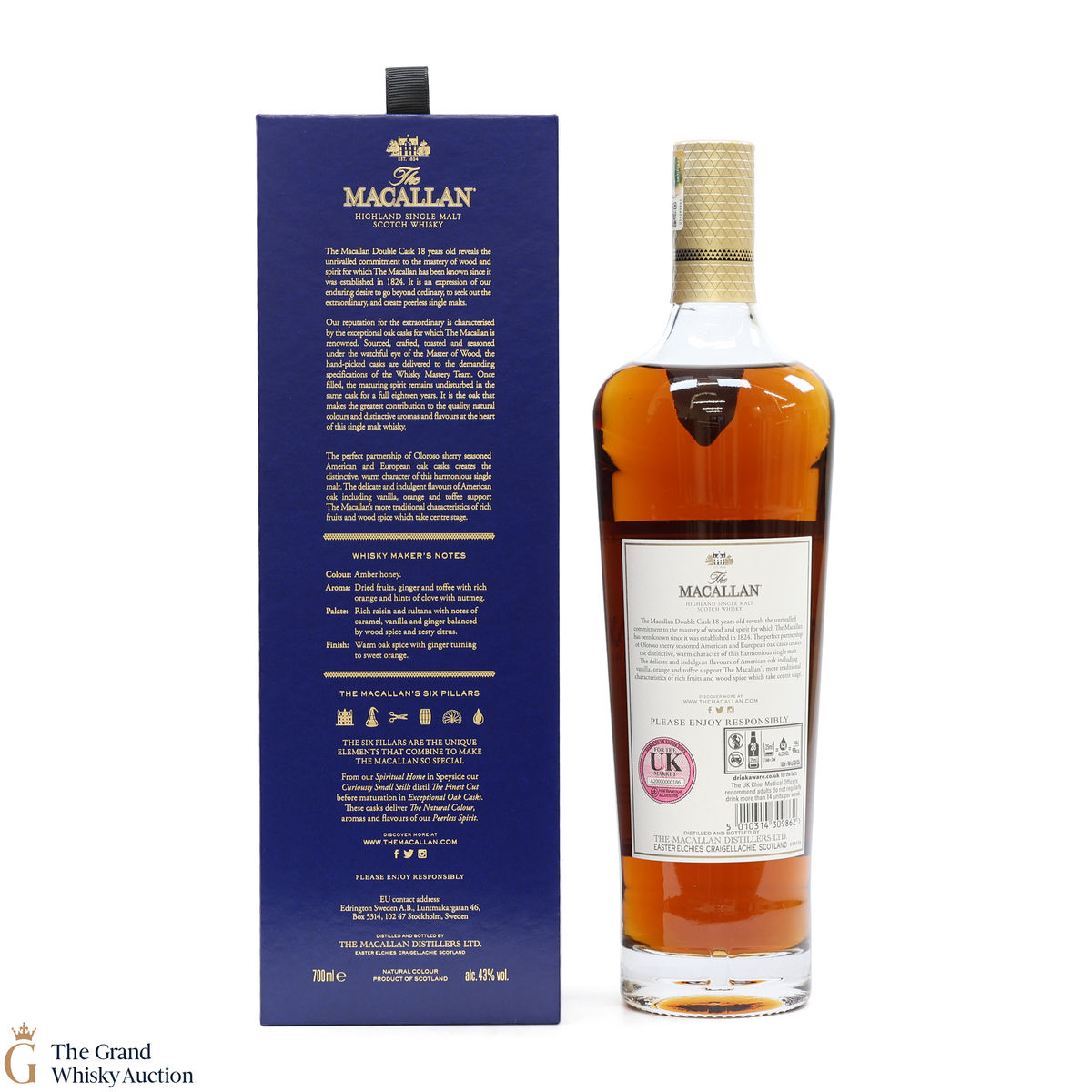 This 18 Year Old Macallan was matured in a combination of American and European Sherry oak for a minimum of 18 years. It is part of the Macallan Double Cask range, which marries the classic Macallan style and the sweetness of American oak.