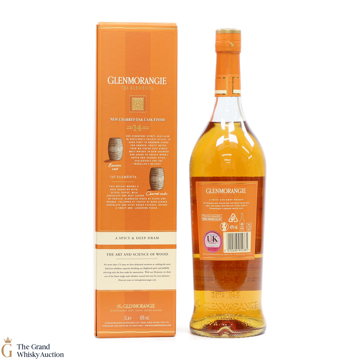 This spicy and deep Elementa celebrates Glenmornagie's skills in wood finishing, an art that brings new depths of flavour to their whisky. Matured initially in American oak bourbon casks to create smoothness and fruity notes and finished in charred oak casks, bringing forth a 14-year-old whisky of woody depth and intense spice. Available exclusively in travel retail.