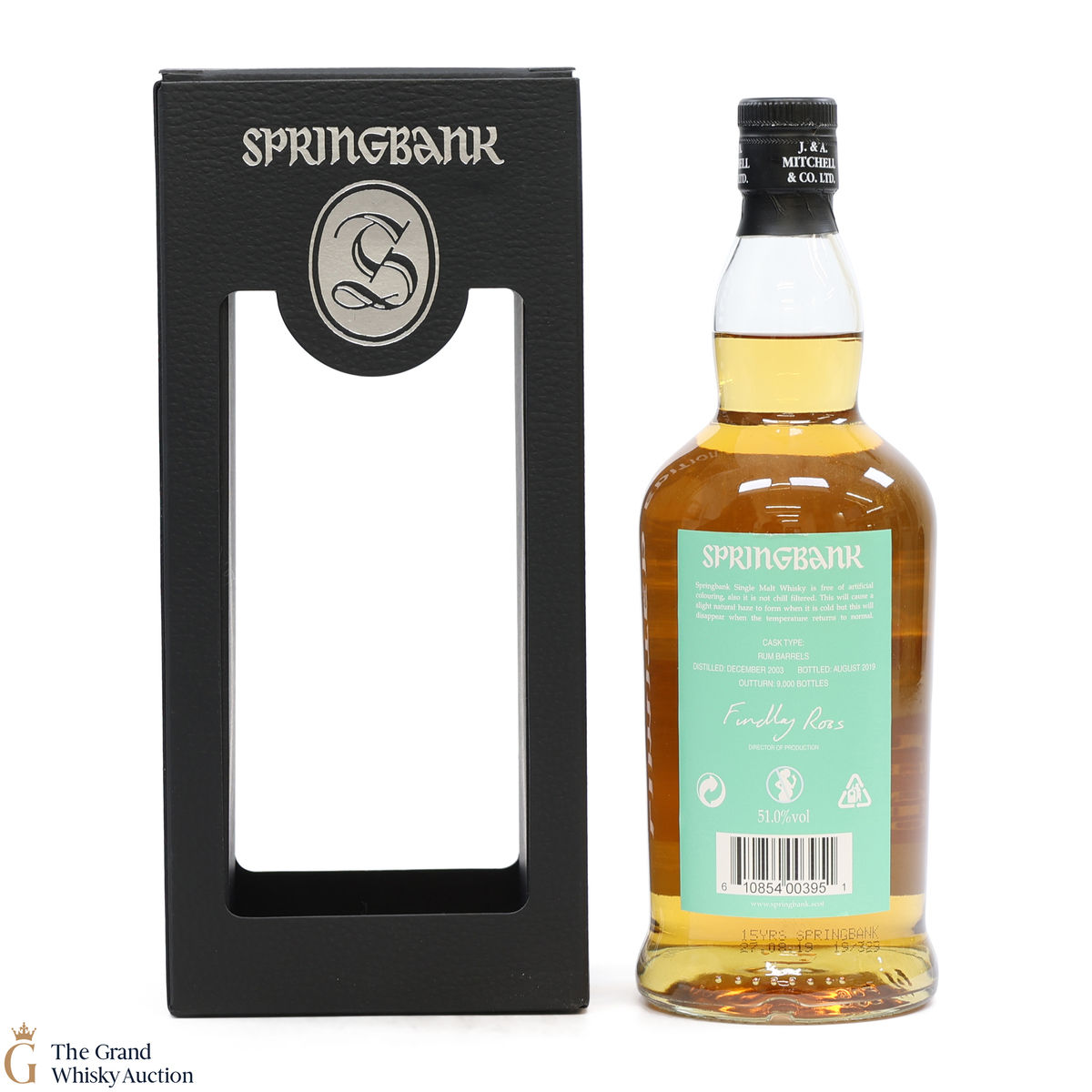This is a limited edition, single malt Scotch whisky from Springbank distillery bottled and released in 2019. The whisky was fully matured in rum casks for 15 years. Bottled at a cask strength of 51.0% this is one of only 9,000 bottles released worldwide.