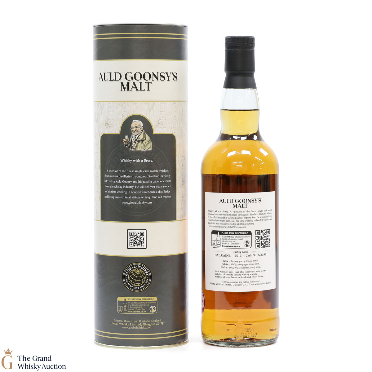 Distilled at the Dailuaine Distillery on the 26th of August 2013, this single malt was finished in a second-fill oloroso hogshead cask #324399 before being bottled by independent bottlers Auld Goonsy's on the 6th of February 2023.
