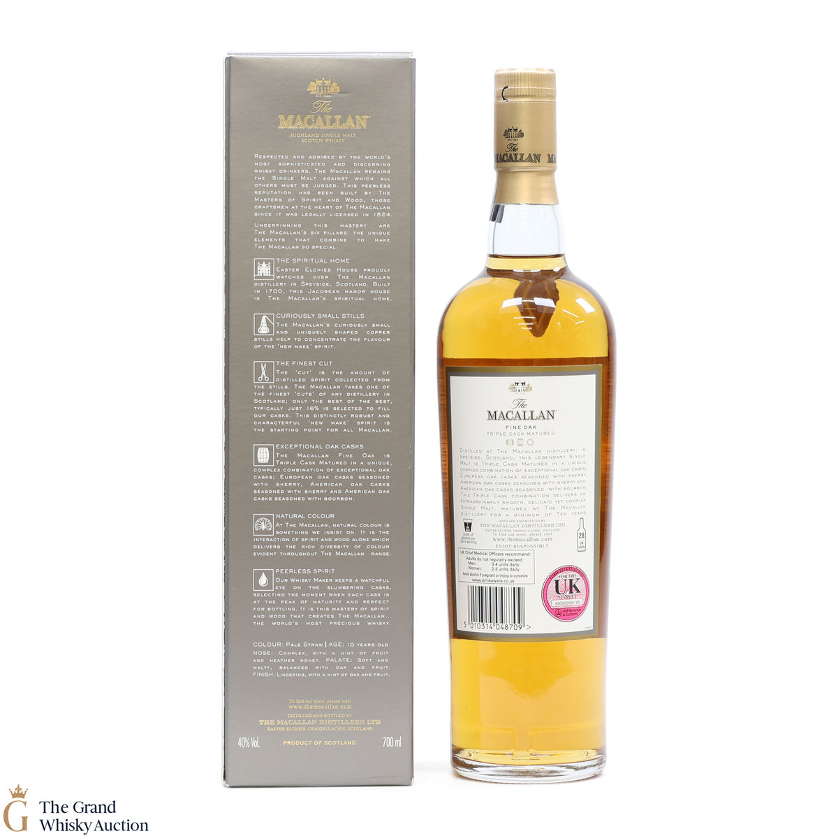 This 10-year-old single malt is part of Macallan's Fine Oak, triple cask matured range. It has been matured for ten years in three oak cask types; Europen oak seasoned with sherry, American oak seasoned with sherry and American oak seasoned with bourbon. This bottling has been discontinued.