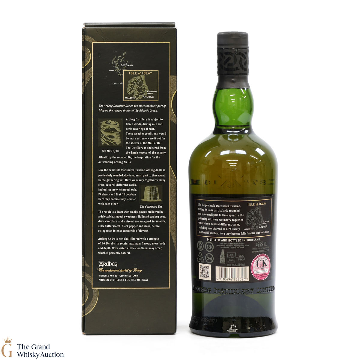 'An Oa' was the first addition to Ardbeg's core range for a decade when introduced in 2017. It is made up of a combination of spirit aged in Pedro-Ximenez sherry casks and bourbon barrels. Married in a French oak marrying vat, this is rounded and smoky with notes of toffee, aniseed, date and banana.