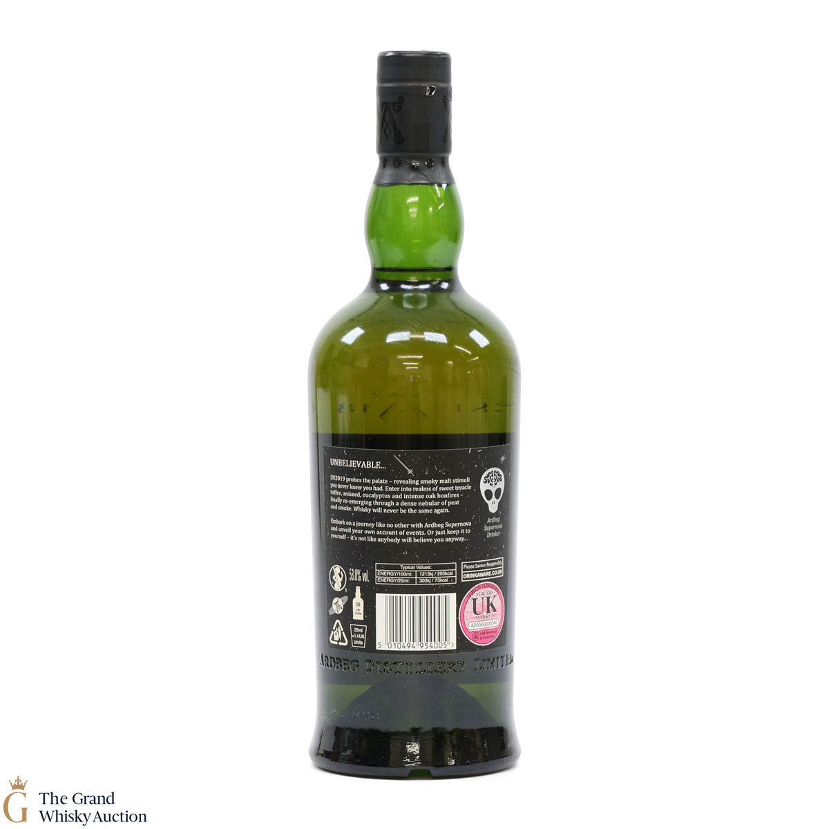 Exclusively released to Ardbeg Committee members in September 2019, this is the fifth and latest release of the Ardbeg Supernova. Matured in ex-Bourbon casks, this limited edition, non-age- statement release is described as having aromas of ‘pungent aniseed, menthol and eucalyptus’, with a ‘nebula of bonfires, soot, charred oak, birch tar and menthol’ on the palate.