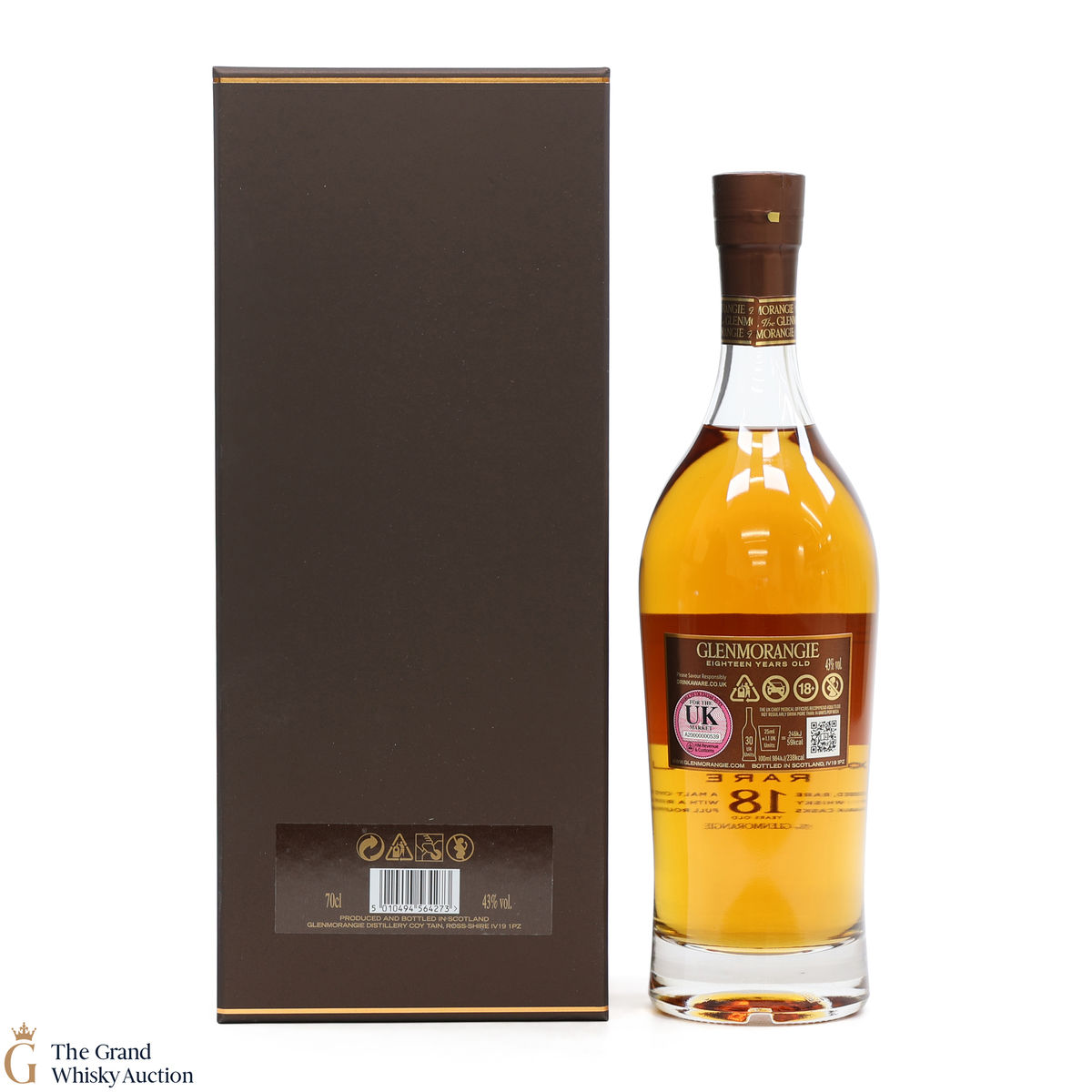This bottle is an 18-year-old Extremely Rare, Highland single malt produced by Glenmorangie. It has been perfected by the sixteen men of Tain who have specially aged this bottle for 18 years in superior oak casks.