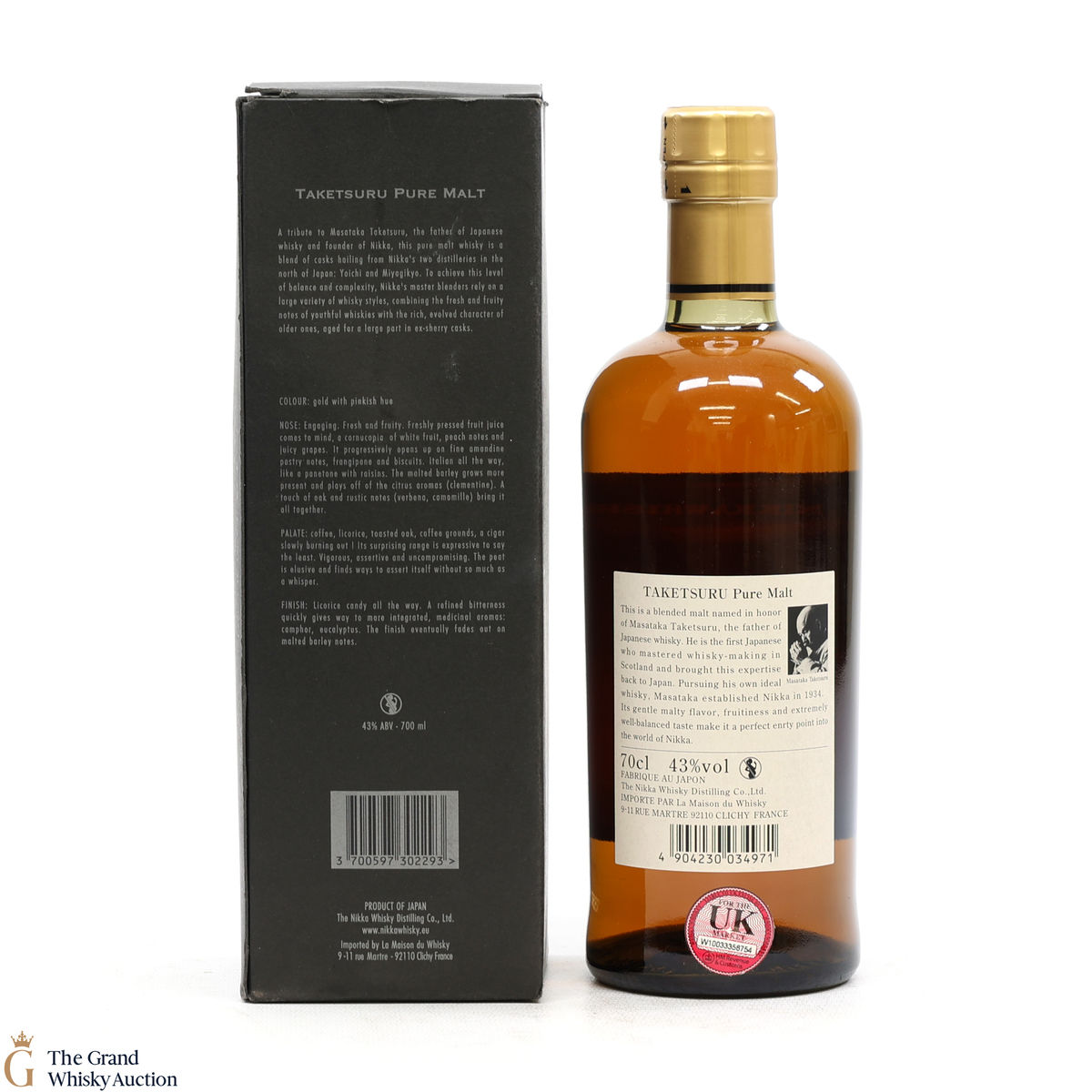 This is a non-age-statement expression of Nikka Taketsuru pure malt whisky, named after the company's founder, Masataka Taketsuru. It contains a blend consisting of a high percentage of malt from the Miyagikyo distillery, with the remainder coming from Yoichi, including some matured in sherry casks.