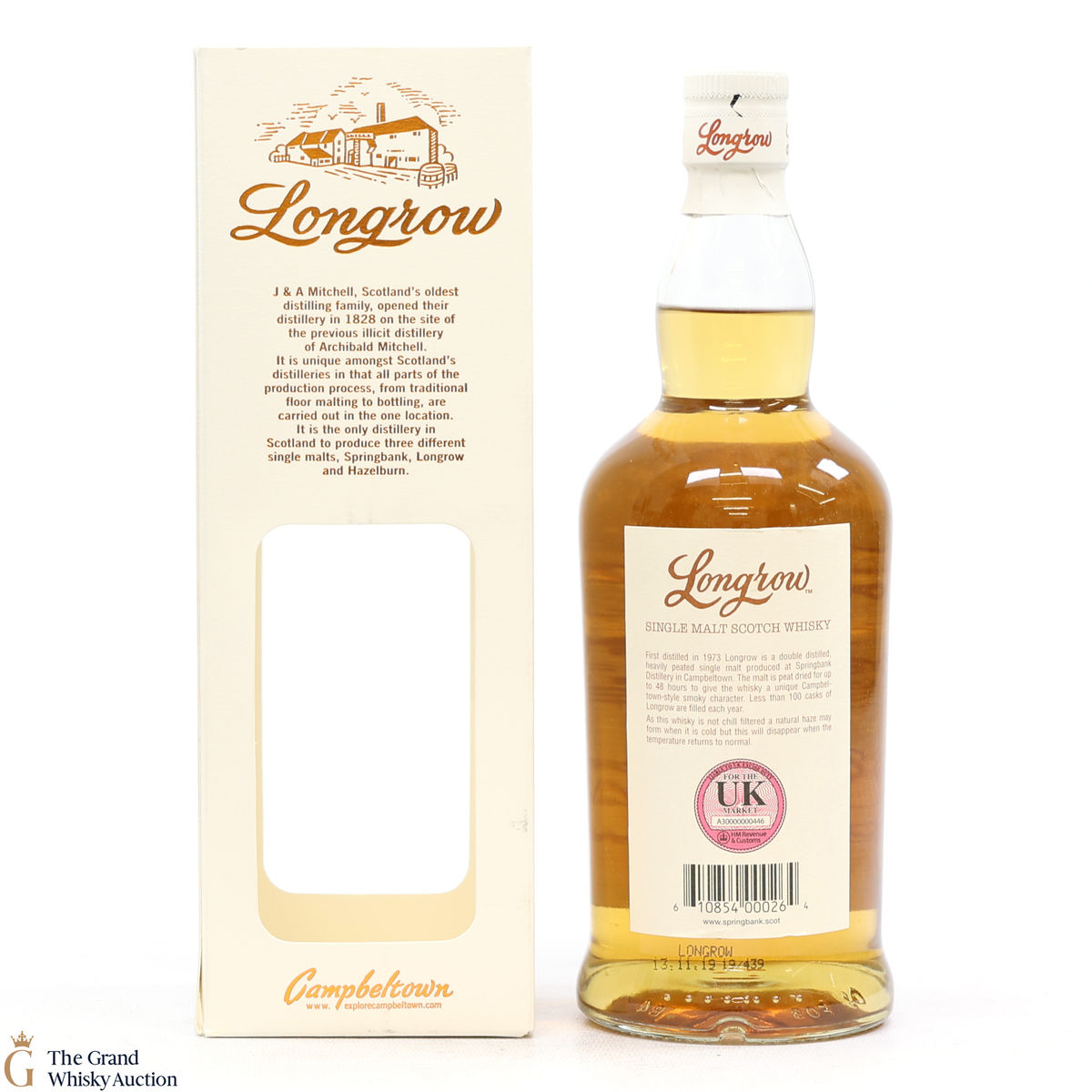 A bottle of Longrow Peated - This is essentially the awesome Longrow C.V. bottling in new packaging, which used to be Longrow's entry-level whisky. Longrow is Springbank's heavily peated whisky - this is a no-age statement expression.