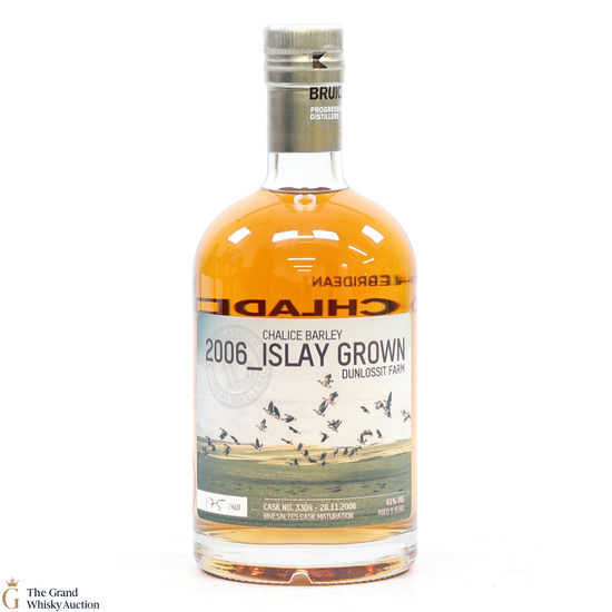 This Bruichladdich was created with Chalice barley grown from Dunlossit Farm on Islay. Harvested and distilled in 2006, it was matured for 9 years in a Rivesaltes cask number #3304. This is one of 410 bottles.