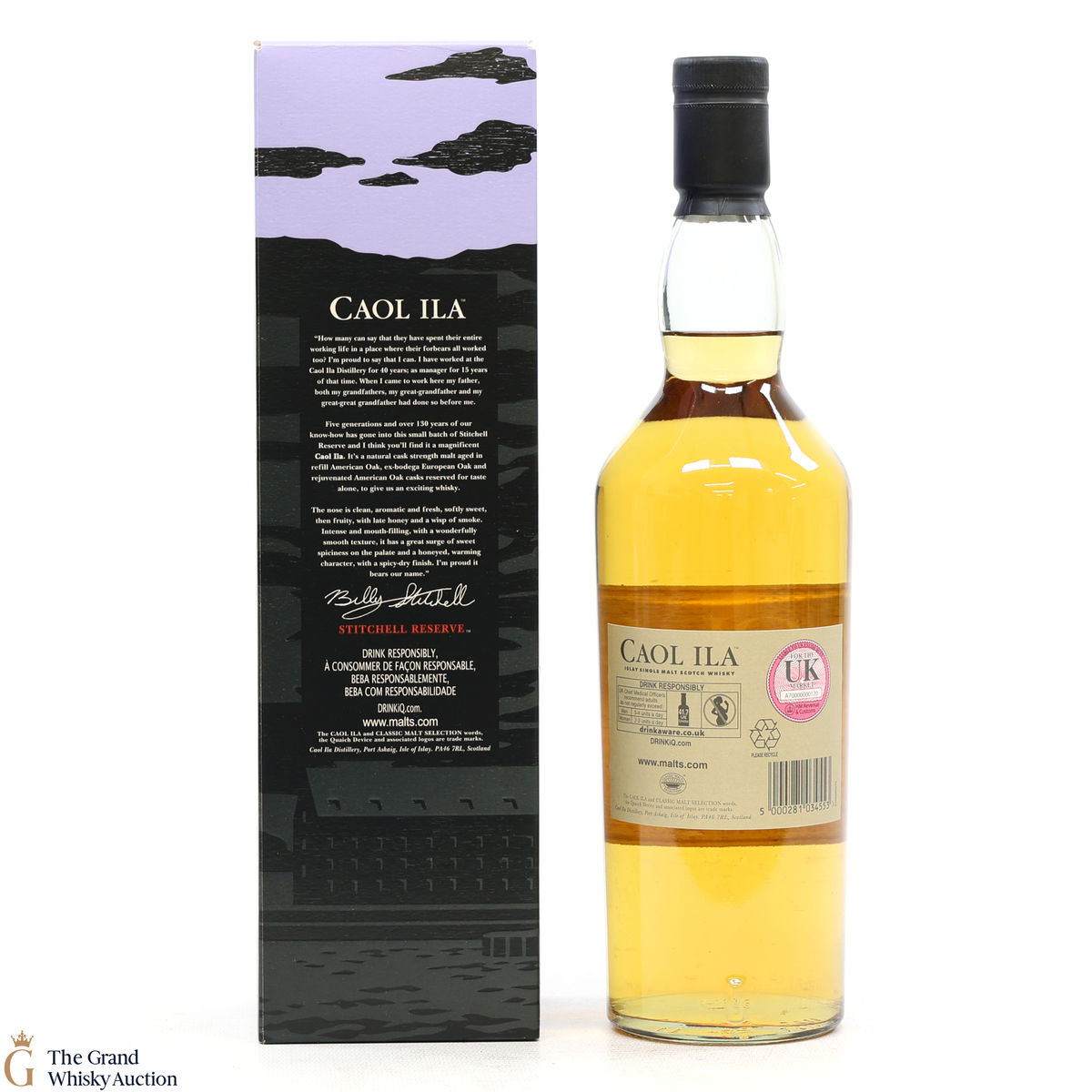 Caol Ila Unpeated Stitchell Reserve bottled at cask strength and part of the 2013 special release series for Billy Stitchell's long service at the distillery. 39 Years later the great man retired and Diageo have recognised his hard work in this bottling.