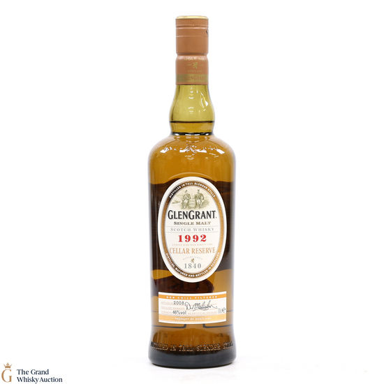 This 1992 vintage Glen Grant Cellar Reserve single malt Scotch whisky was matured in oak casks, and bottled in 2008. Made available only available at the distillery, it was introduced by new owners Campari.