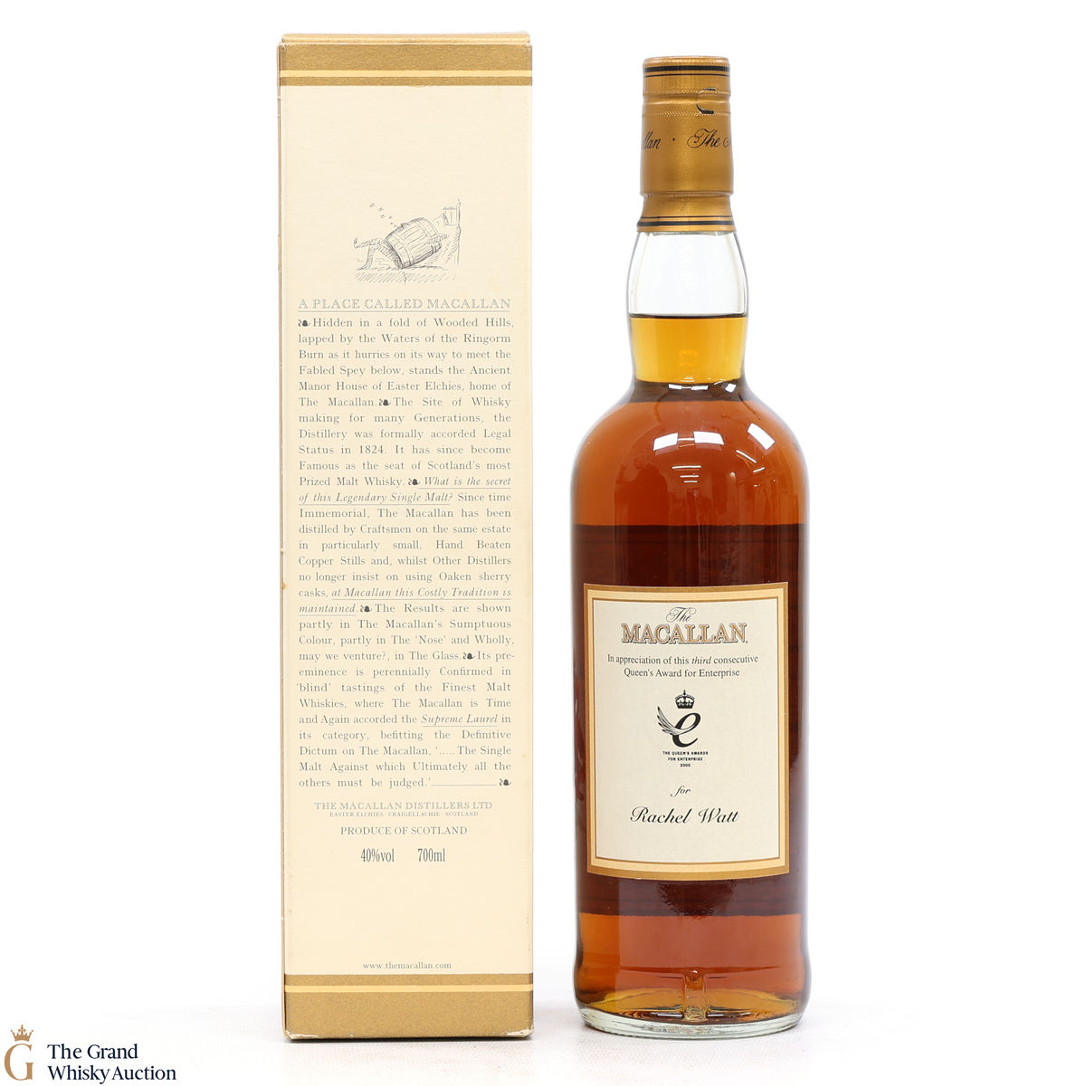 Due to the various ages of bottles and their seals, the condition of liquid is at the buyer's discretion and no claim can be lodged against failure/leakage in transit. Loss and breakage cover is available at 3% of the hammer price as standard. If the lot is not insured, no claim can be lodged against the courier or The Grand Whisky Auction for breakage or loss in transit.