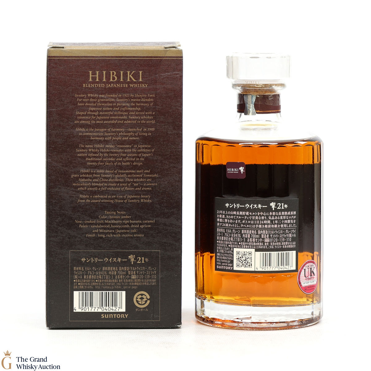 Hibiki 21-Year-Old is a very popular blended whisky from Suntory. It is made up of a blend of specially selected mature malt and grain whiskies aged over 21 years. The key Yamazaki sherry casked malt is vatted with other carefully chosen mellow unblended grain whiskies over 21 years old.