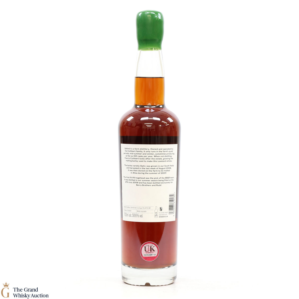 The cask yielded just 321 bottles. This expression has been bottled for Berry Bros & Rudd. Daftmill is a farm distillery. Owned and operated by the Cuthbert family, it only runs in the farm's quiet periods; midsummer and winter, sometimes producing as few as 100 casks per year.