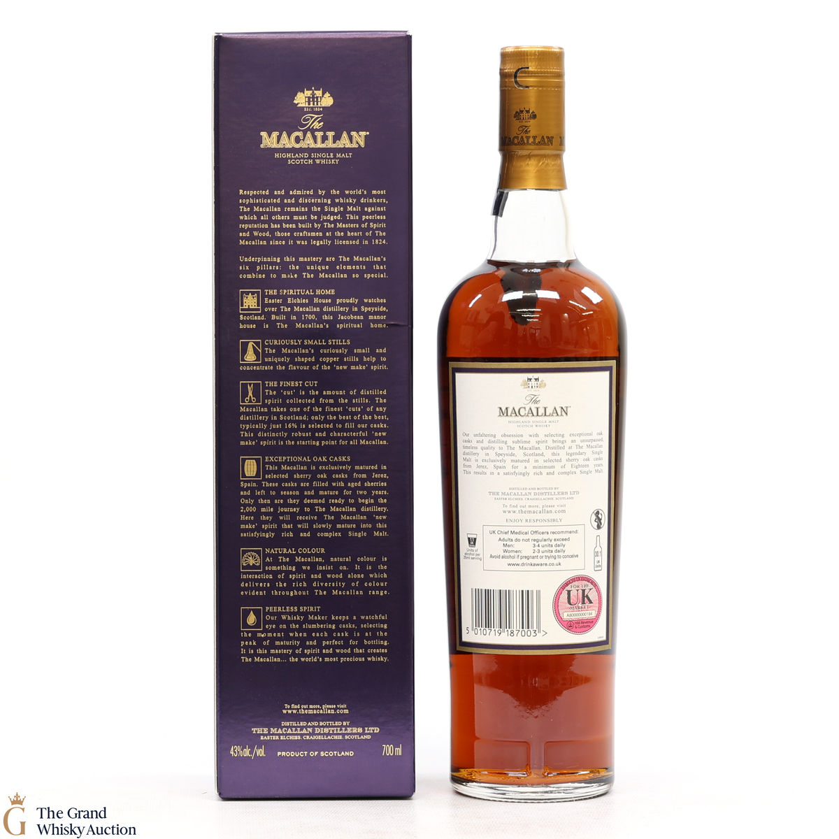This annual release of The Macallan's popular 18 Year Old Sherry Oak is matured exclusively in sherry seasoned casks, built from both Spanish and American oak, providing a beautifully dark flavour with rich aromas.
