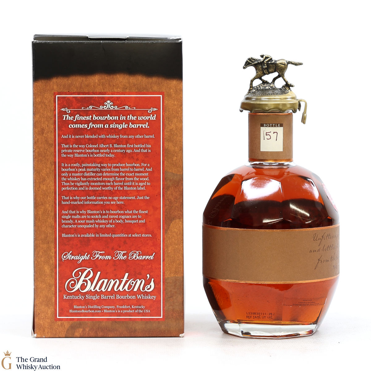 PLEASE NOTE: The wax seal on Blanton's bottles are prone to cracking in transit due to their design. Therefore, as stated in our T&C’s, we do not and will not accept liability should the seal be breached, broken, split or leak in transit. Additionally, please know due to the design of the internal cardboard packaging that surrounds the top of the bottles, it too may be torn. By bidding on this lot you have understood this to be true. Insurance is for complete breakage or loss in transit only.